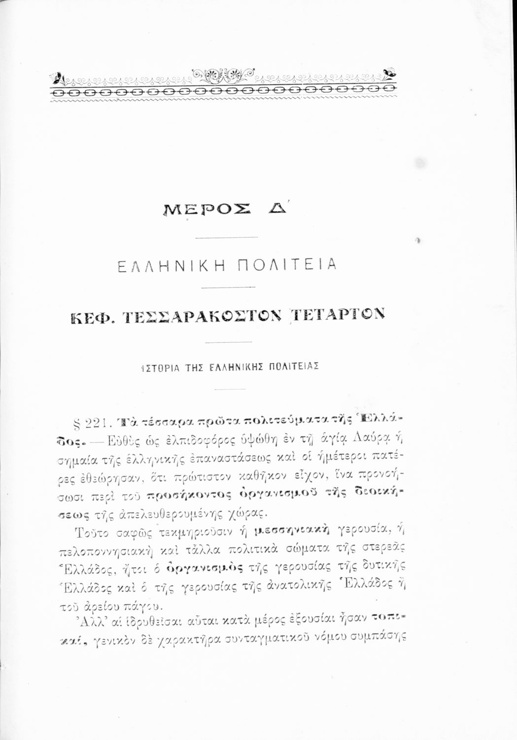 520 ## _aΠαιδαγωγικό βοήθημα Αγωγής του Πολίτη Γυμνασίου που απευθύνεται σε διδασκάλους, σπουδάζοντες νέους, αλλά και σε κάθε πολίτη. Αποσκοπεί στην κατανόηση της έννοιας του Δίκαιου και του Πολίτη. Περιλαμβάνει το αναθεωρημένο Σύνταγμα του 1911.
