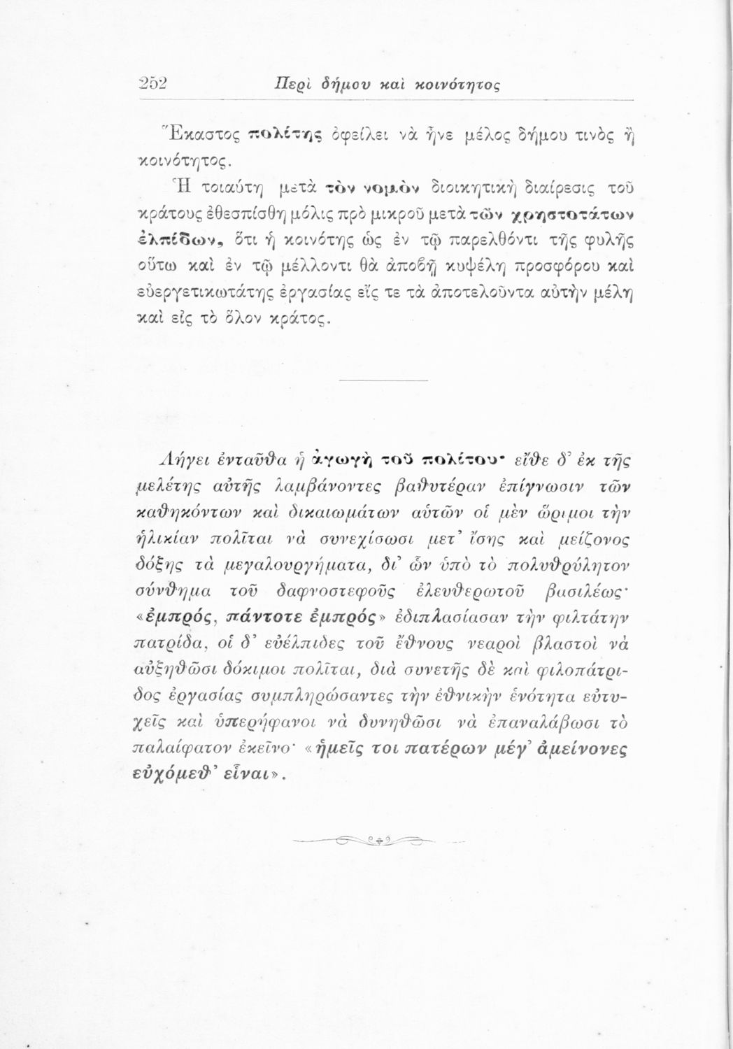 Σχολικό εγχειρίδιο Αγωγής του Πολίτη που αποσκοπεί όχι μόνο στην "μετάδοση στοιχειωδών γνώσεων δικαίου και πολιτικής οικονομίας αλλά κυρίως στην εθνοπρεπής πολιτική, κοινωνική και ηθική διάπλαση της ελληνικής ...