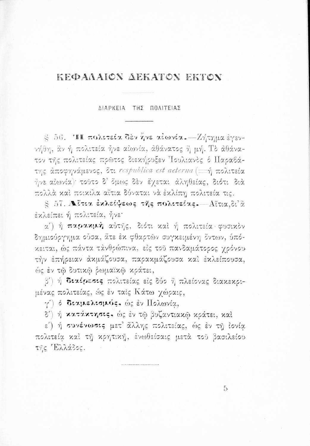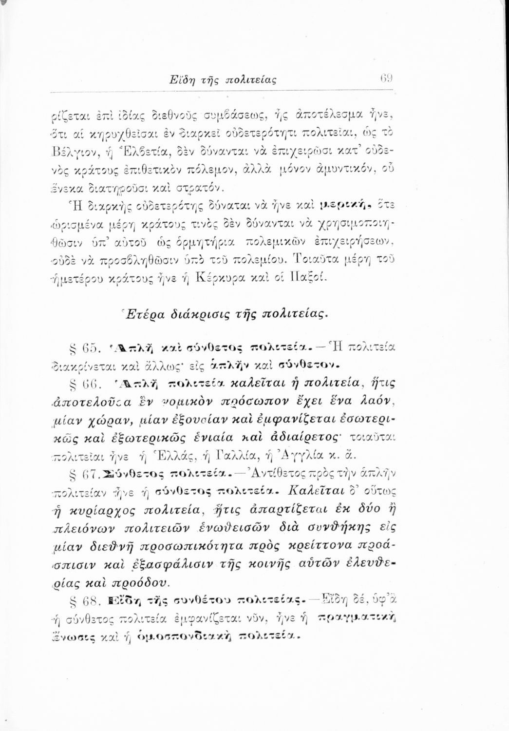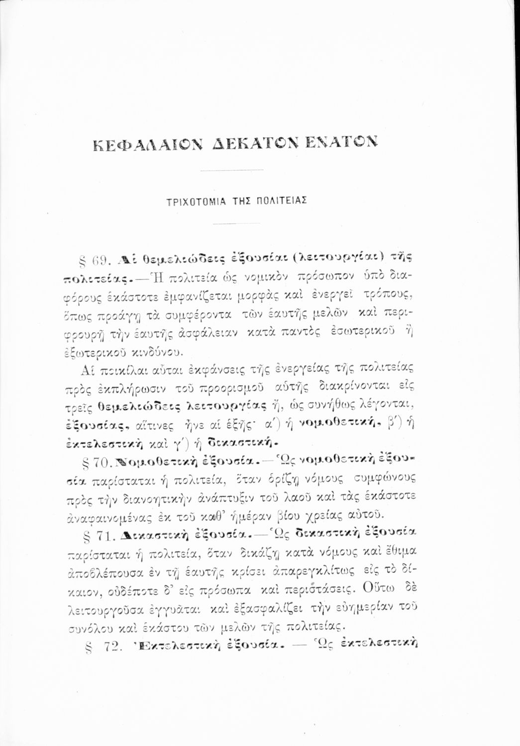 Παιδαγωγικό βοήθημα Αγωγής του Πολίτη Γυμνασίου που απευθύνεται σε διδασκάλους, σπουδάζοντες νέους, αλλά και σε κάθε πολίτη. Αποσκοπεί στην κατανόηση της έννοιας του Δίκαιου και του Πολίτη. Περιλαμβάνει το αναθεωρημένο Σύνταγμα του 1911.
