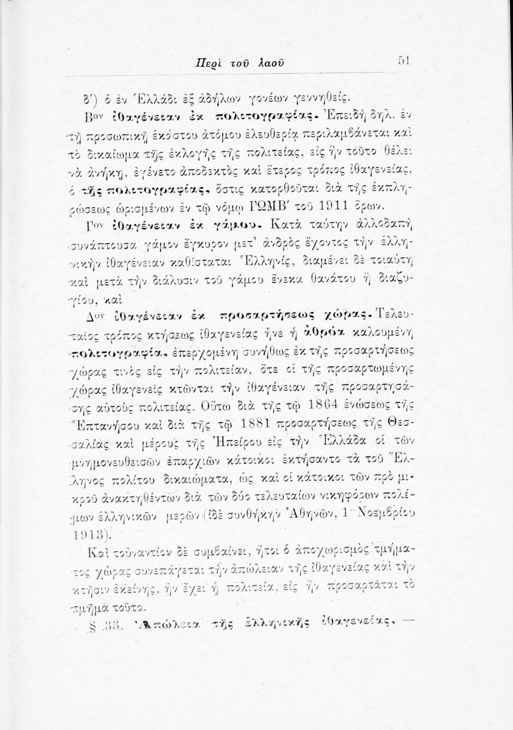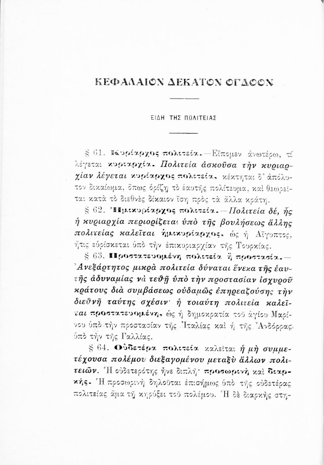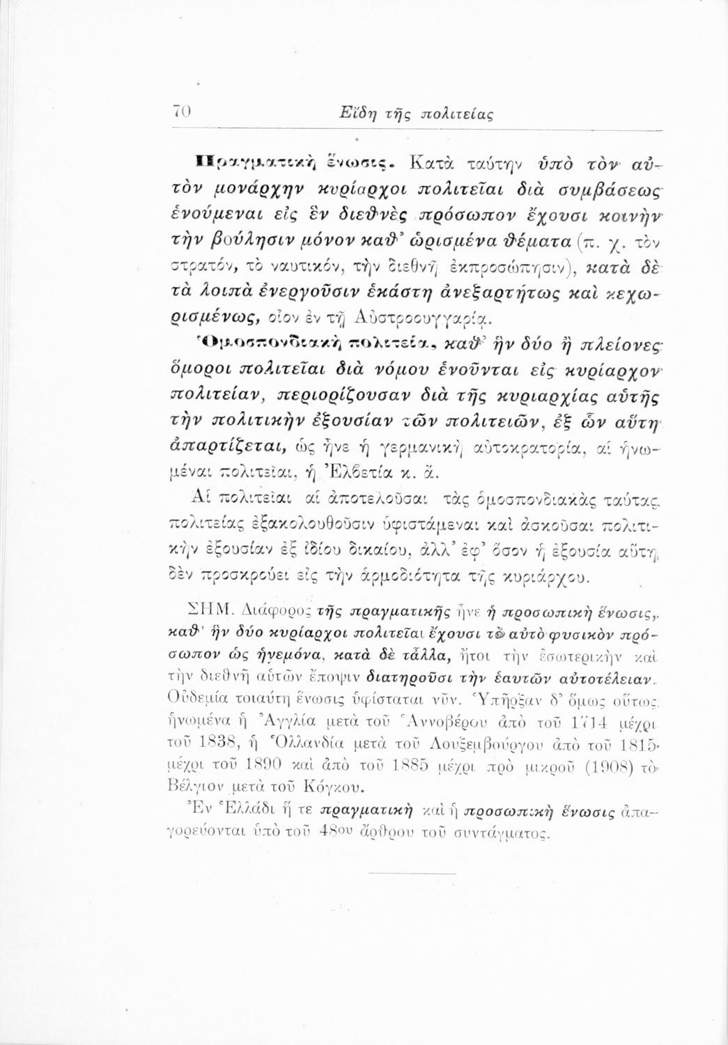 Παιδαγωγικό βοήθημα Αγωγής του Πολίτη Γυμνασίου που απευθύνεται σε διδασκάλους, σπουδάζοντες νέους, αλλά και σε κάθε πολίτη. Αποσκοπεί στην κατανόηση της έννοιας του Δίκαιου και του Πολίτη. Περιλαμβάνει το αναθεωρημένο Σύνταγμα του 1911.