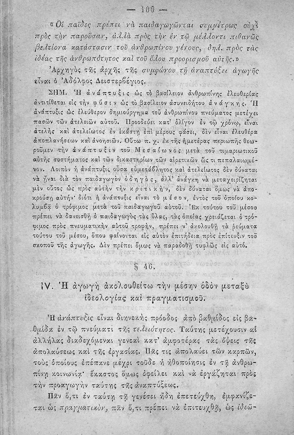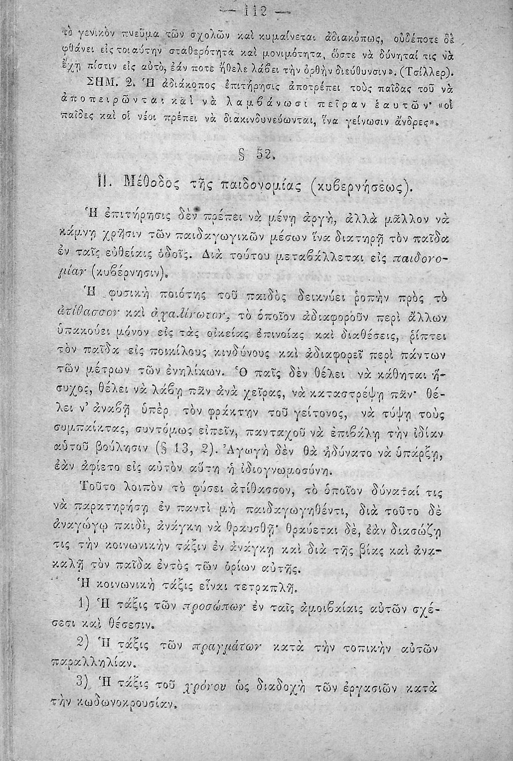 Παρουσίαση περιεχομένου: Σχολικό εγχειρίδιο που απευθύνεται στους μαθητές των Διδασκαλείων και του Πανεπιστημίου και αποσκοπεί να τους εξοικειώσει με ζητήματα παιδαγωγικής, διδακτικής, ψυχολογίας, λογικής και ηθικής. Το πρωτότυπο εγχειρίδιο είχε εγκριθεί από την αυστριακή κυβέρνηση και η μετάφρασή του έχει εγκριθεί από το Υπουργείο Εκκλησιαστικών και Δημόσιας Εκπαίδευσης. Ο μεταφραστής ήταν διευθυντής του Διδασκαλείου της Αθήνας και υφηγητής Φιλοσοφίας στο Πανεπιστήμιο Αθηνών.