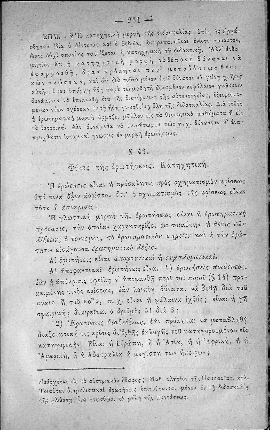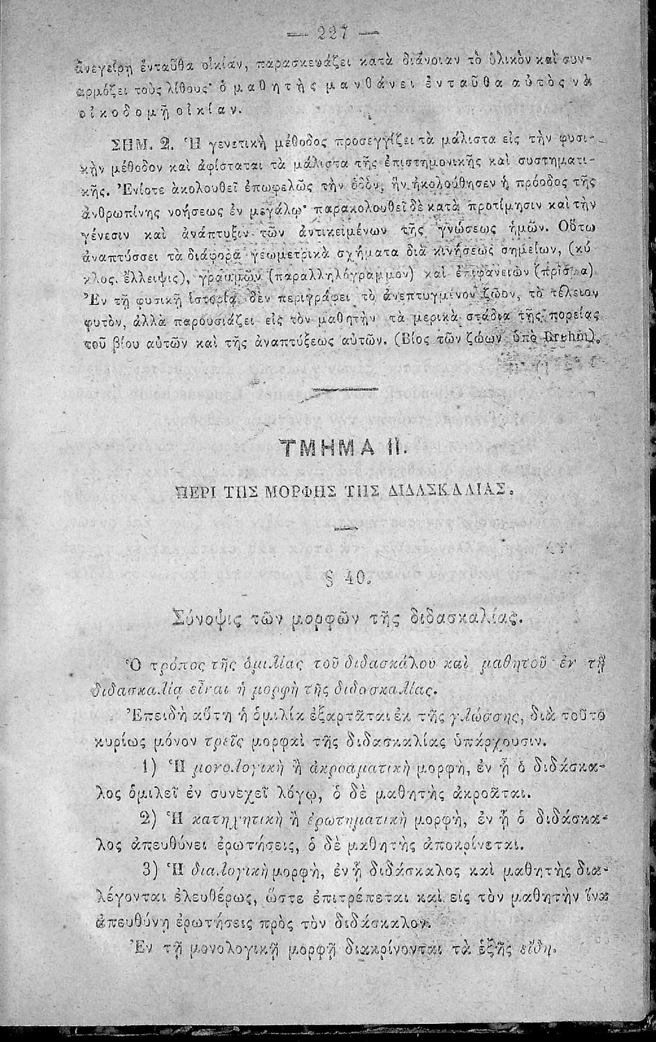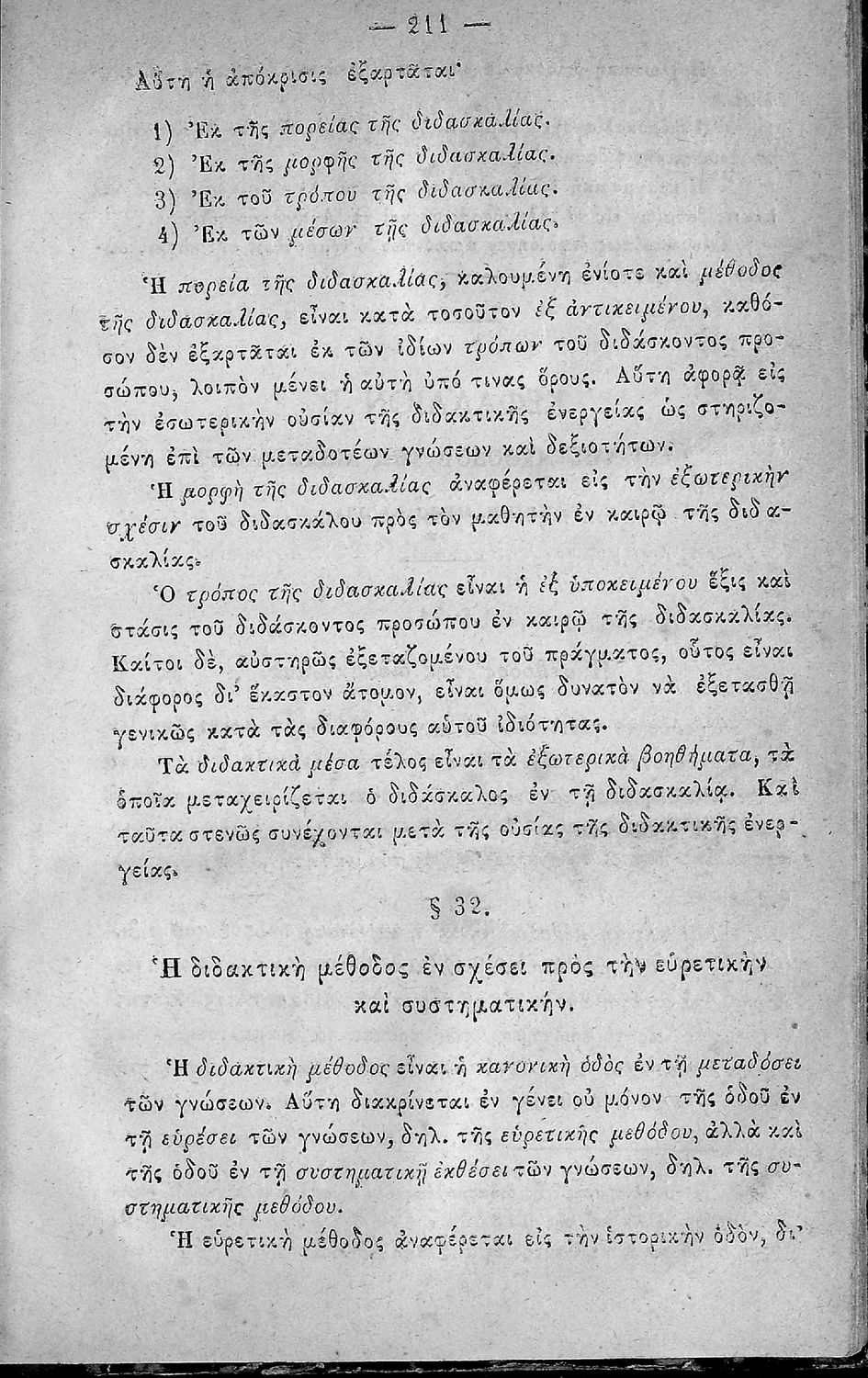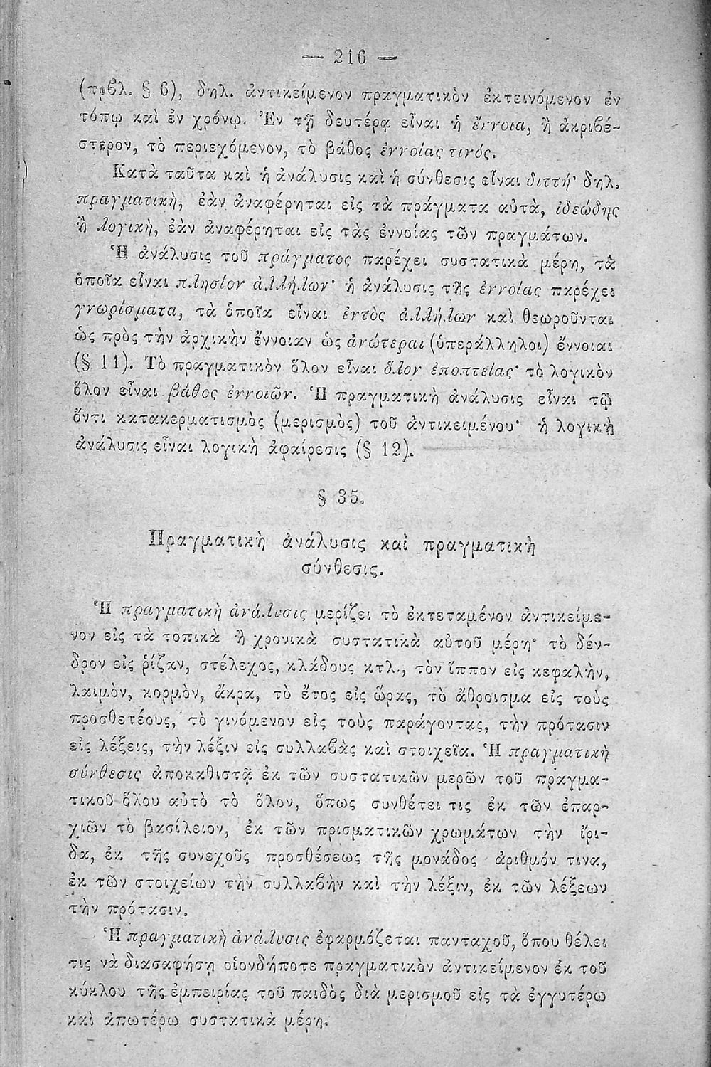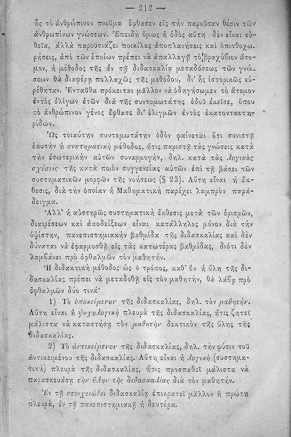 Παρουσίαση περιεχομένου: Σχολικό εγχειρίδιο που απευθύνεται στους μαθητές των Διδασκαλείων και του Πανεπιστημίου και αποσκοπεί να τους εξοικειώσει με ζητήματα παιδαγωγικής, διδακτικής, ψυχολογίας, λογικής και ηθικής. Το πρωτότυπο εγχειρίδιο είχε εγκριθεί από την αυστριακή κυβέρνηση και η μετάφρασή του έχει εγκριθεί από το Υπουργείο Εκκλησιαστικών και Δημόσιας Εκπαίδευσης. Ο μεταφραστής ήταν διευθυντής του Διδασκαλείου της Αθήνας και υφηγητής Φιλοσοφίας στο Πανεπιστήμιο Αθηνών.
