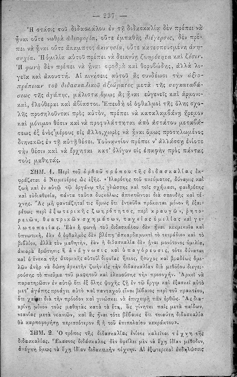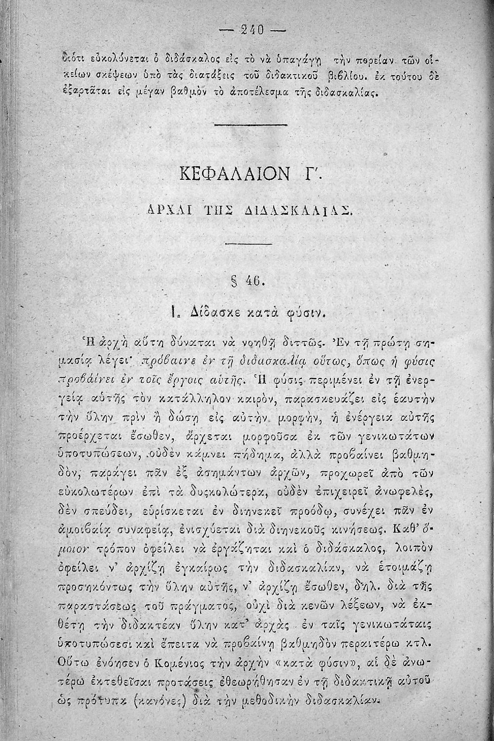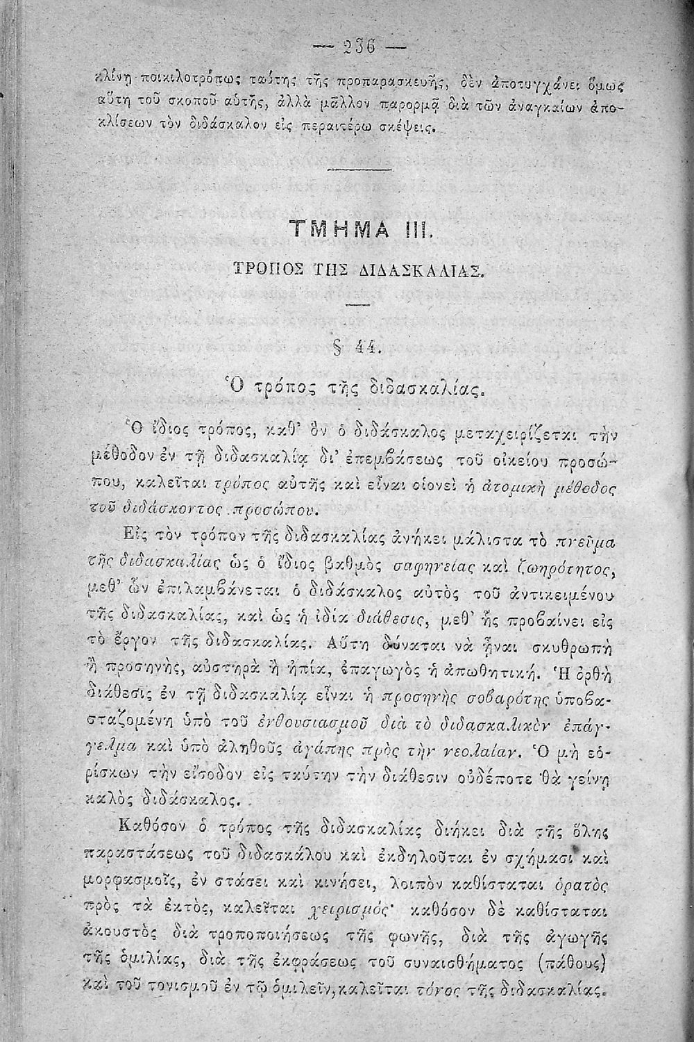 Παρουσίαση περιεχομένου: Σχολικό εγχειρίδιο που απευθύνεται στους μαθητές των Διδασκαλείων και του Πανεπιστημίου και αποσκοπεί να τους εξοικειώσει με ζητήματα παιδαγωγικής, διδακτικής, ψυχολογίας, λογικής και ηθικής. Το πρωτότυπο εγχειρίδιο είχε εγκριθεί από την αυστριακή κυβέρνηση και η μετάφρασή του έχει εγκριθεί από το Υπουργείο Εκκλησιαστικών και Δημόσιας Εκπαίδευσης. Ο μεταφραστής ήταν διευθυντής του Διδασκαλείου της Αθήνας και υφηγητής Φιλοσοφίας στο Πανεπιστήμιο Αθηνών.
