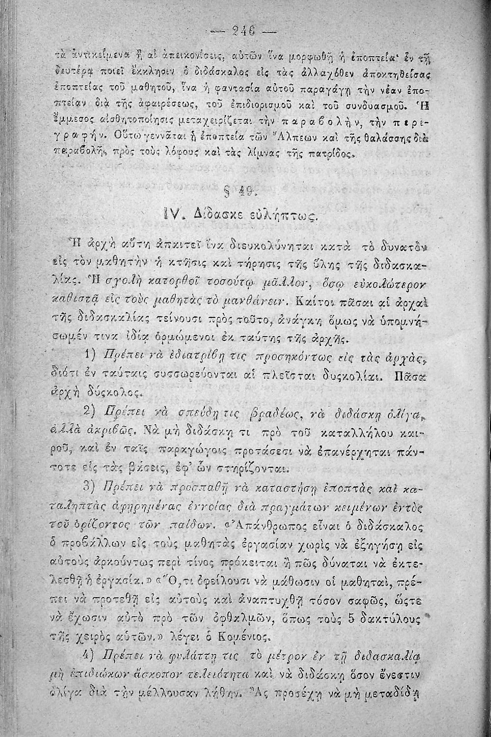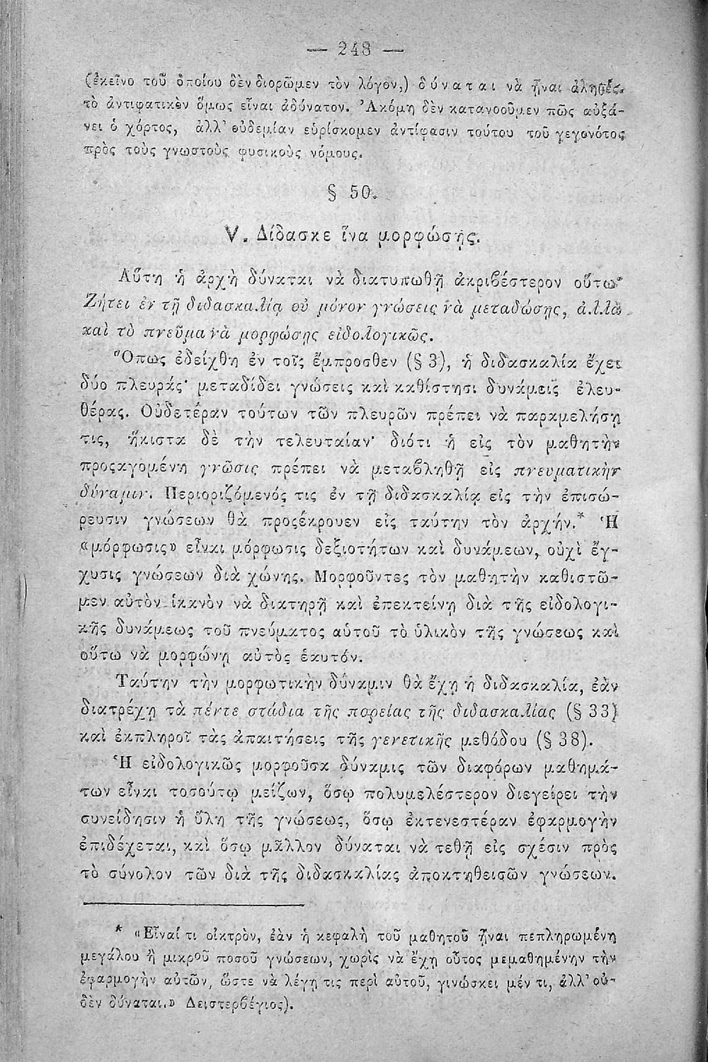 Σχολικό εγχειρίδιο που απευθύνεται στους μαθητές των Διδασκαλείων και του Πανεπιστημίου και αποσκοπεί να τους εξοικειώσει με ζητήματα παιδαγωγικής, διδακτικής, ψυχολογίας, λογικής και ηθικής. Το πρωτότυπο εγχειρίδιο είχε εγκριθεί από την αυστριακή κυβέρνηση και η μετάφρασή του έχει εγκριθεί από το Υπουργείο Εκκλησιαστικών και Δημόσιας Εκπαίδευσης. Ο μεταφραστής ήταν διευθυντής του Διδασκαλείου της Αθήνας και υφηγητής Φιλοσοφίας στο Πανεπιστήμιο Αθηνών.