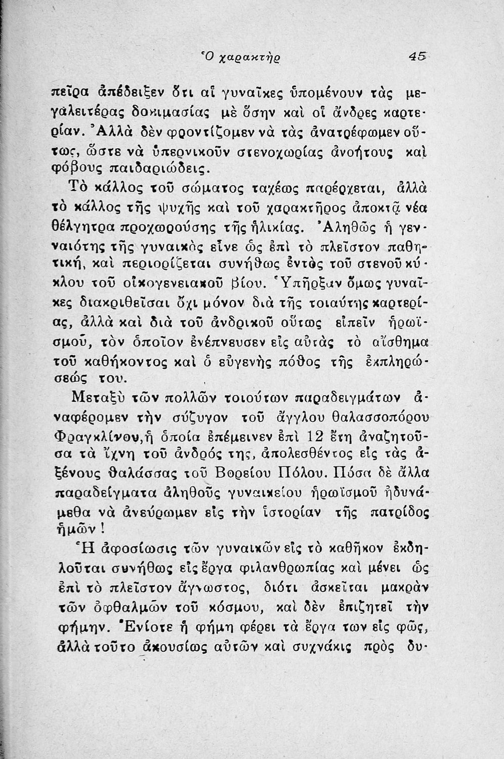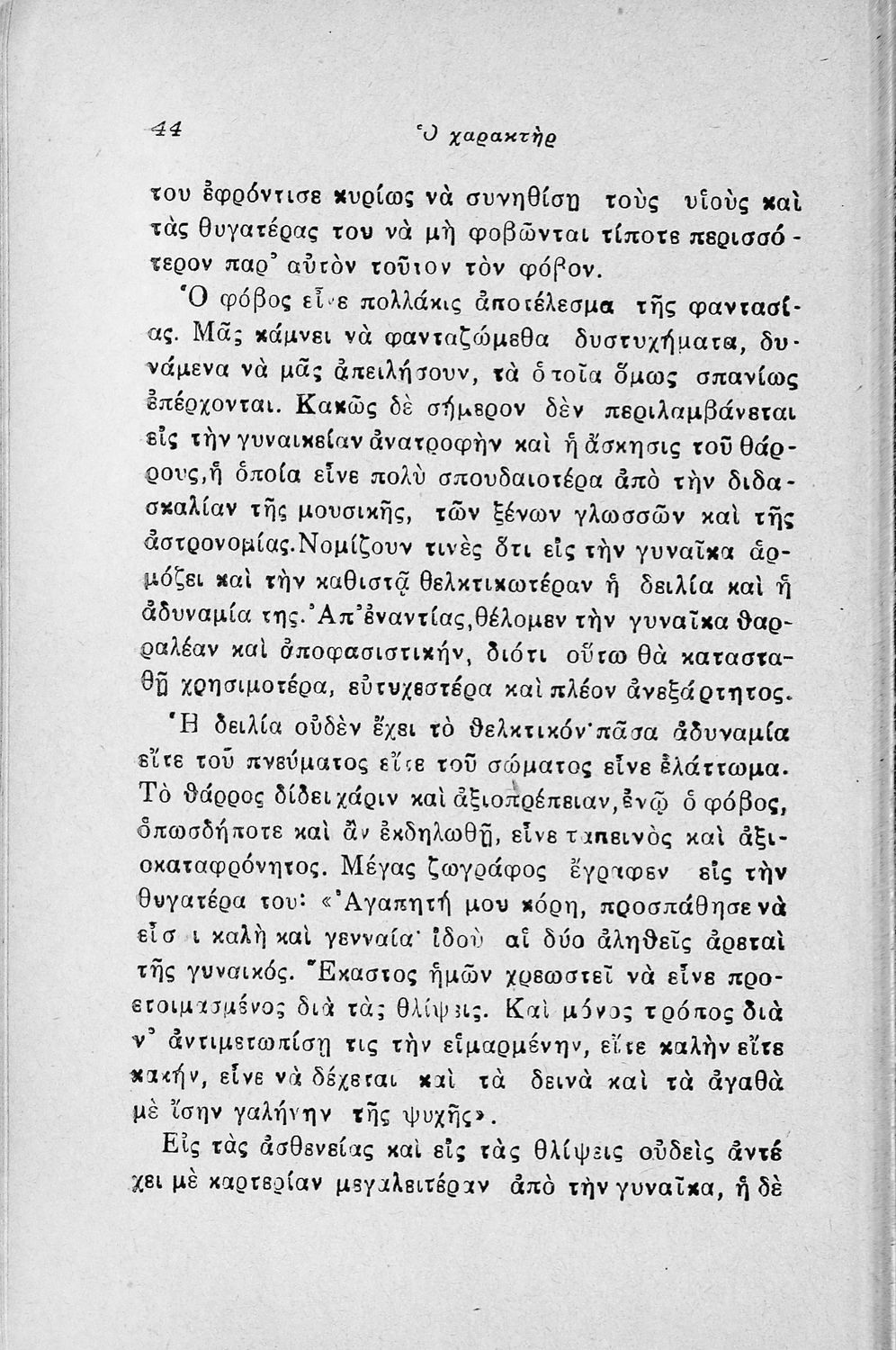 Παρουσίαση περιεχομένου: Εγχειρίδιο λαϊκής ψυχολογίας που πραγματεύεται θέματα όπως ο χαρακτήρας, η οικογένεια, η συζυγική ζωή και το καθήκον.
