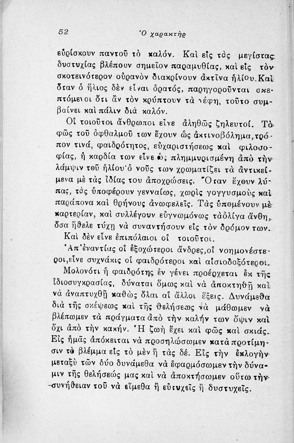 Μαθητικό βοήθημα Αρχαίων Ελληνικών της Γ΄ τάξης των τετρατάξιων Γυμνασίων. Το βιβλίο περιέχει το έργο του Θεόφραστου Χαρακτήρες από μετάφραση.