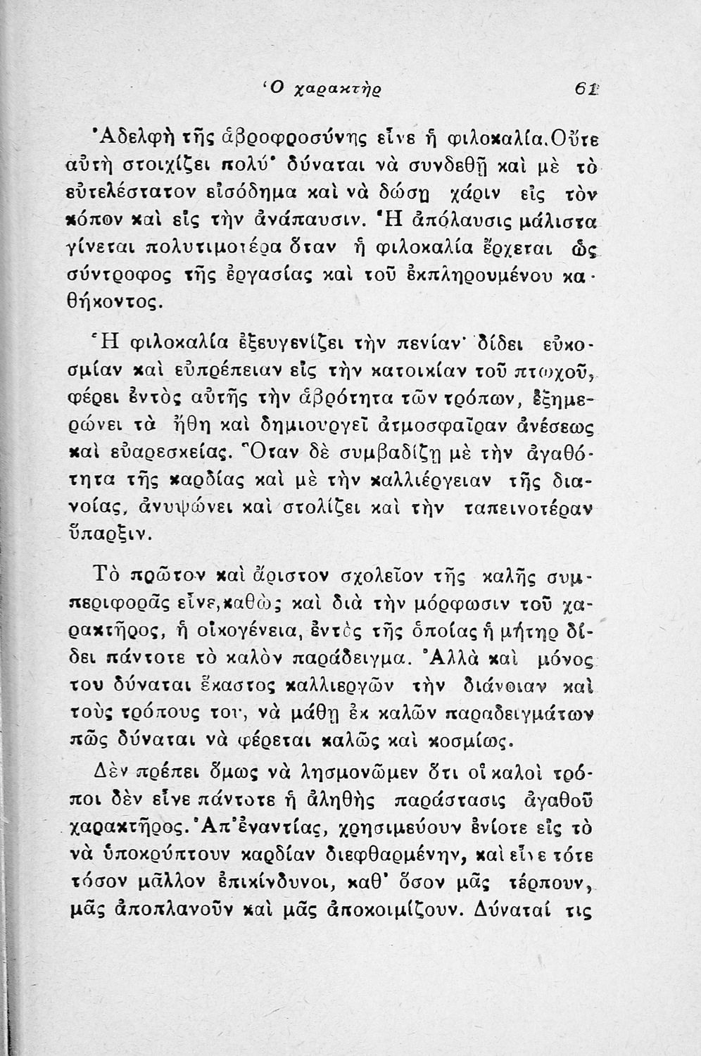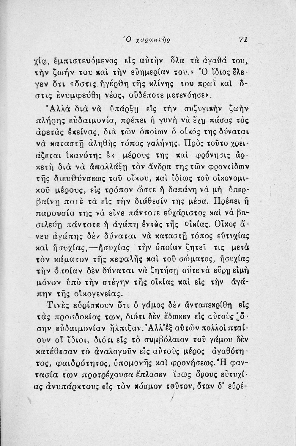 Παρουσίαση περιεχομένου: Εγχειρίδιο λαϊκής ψυχολογίας που πραγματεύεται θέματα όπως ο χαρακτήρας, η οικογένεια, η συζυγική ζωή και το καθήκον.