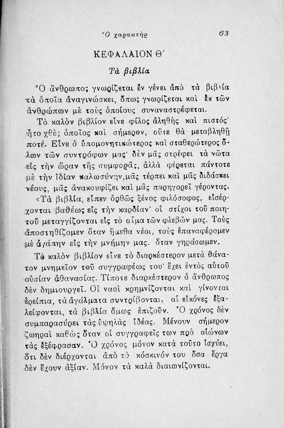 Μαθητικό βοήθημα Αρχαίων Ελληνικών της Γ΄ τάξης των τετρατάξιων Γυμνασίων. Το βιβλίο περιέχει το έργο του Θεόφραστου Χαρακτήρες από μετάφραση.