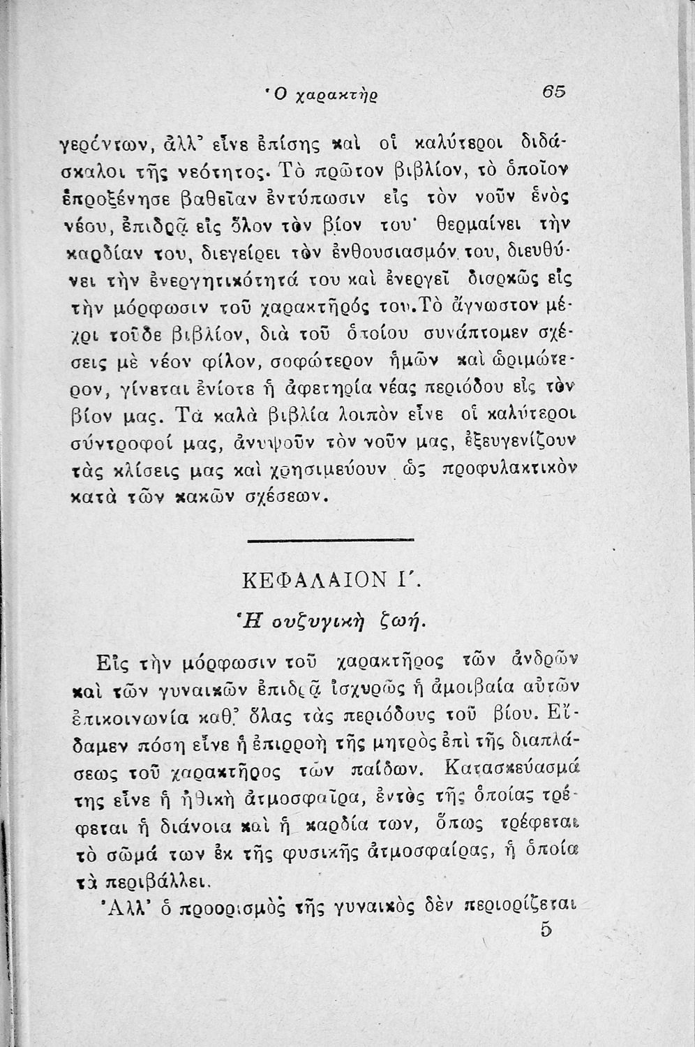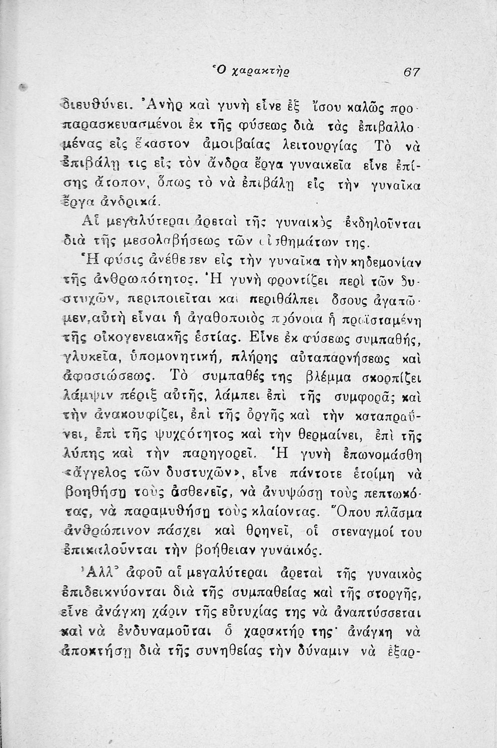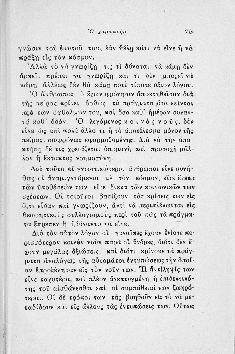 Εγχειρίδιο λαϊκής ψυχολογίας που πραγματεύεται θέματα όπως ο χαρακτήρας, η οικογένεια, η συζυγική ζωή και το καθήκον.