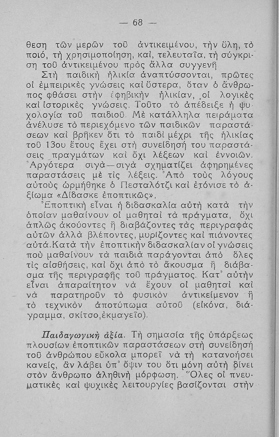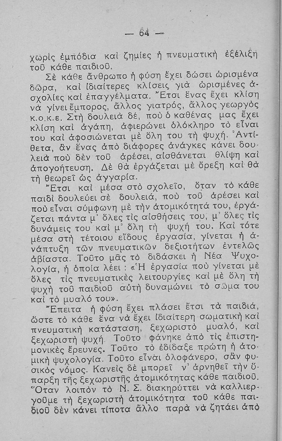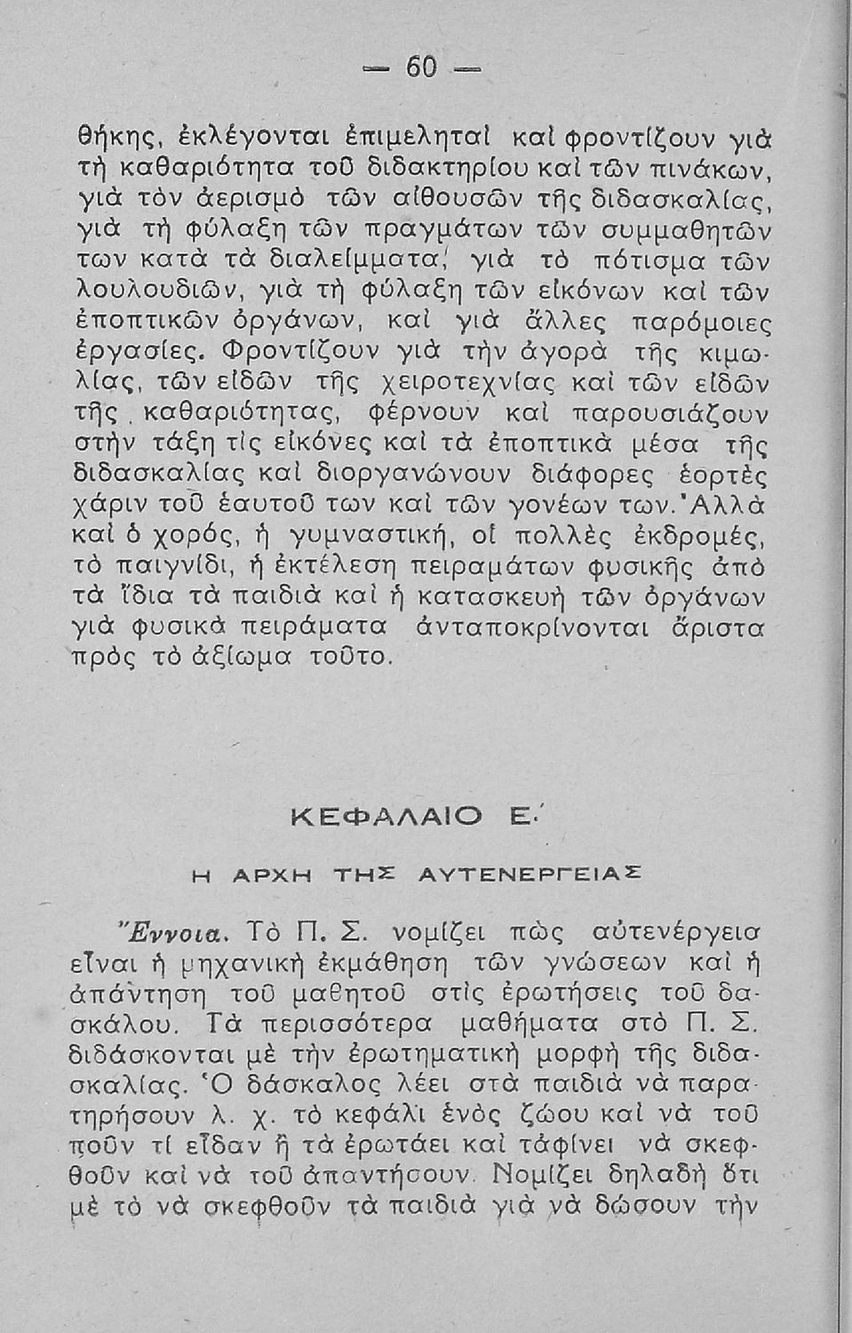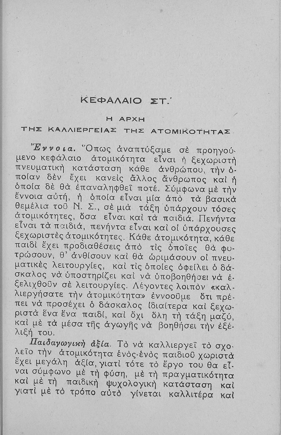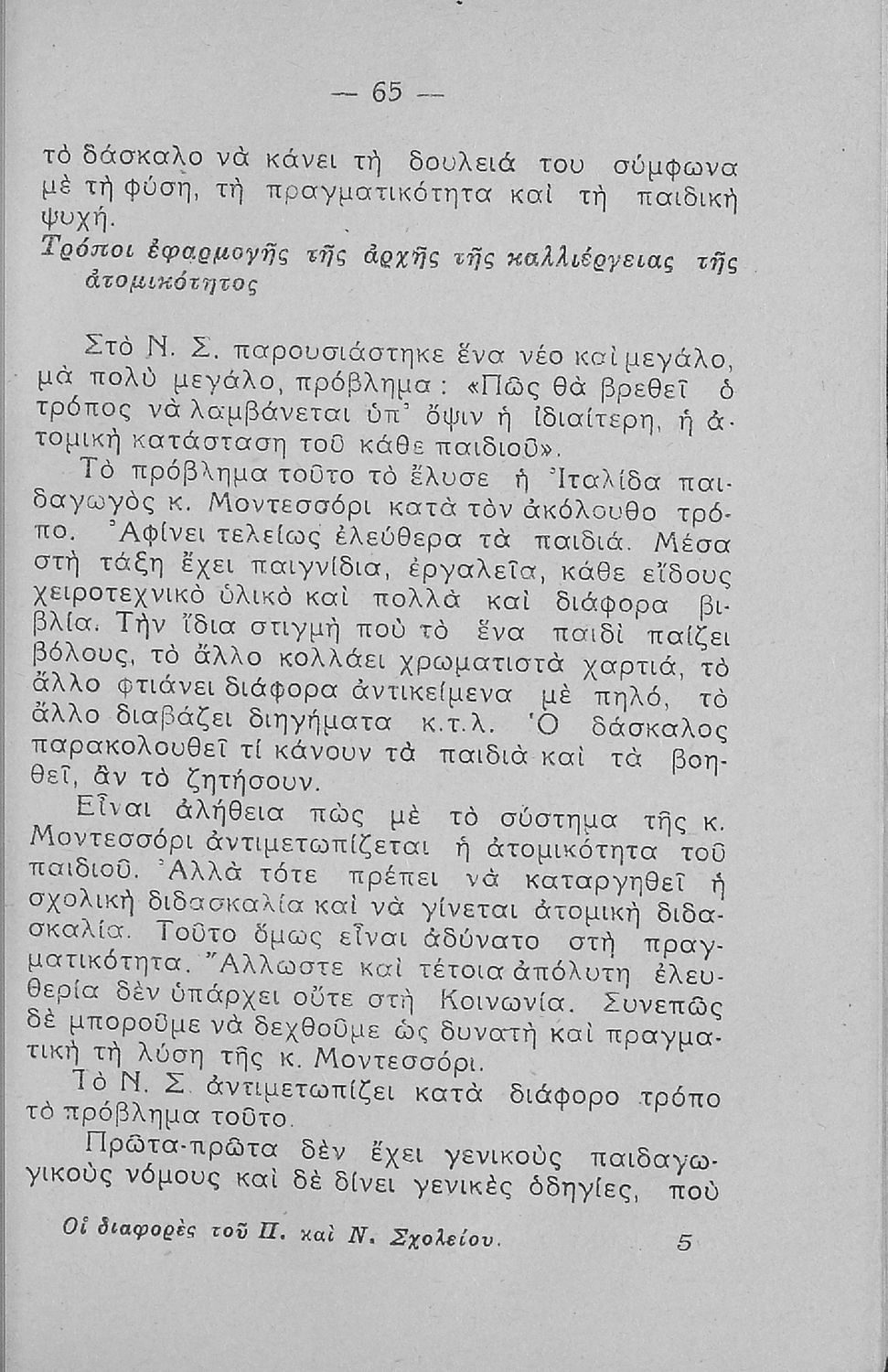 Παιδαγωγικό βοήθημα που απευθύνεται στους δασκάλους και αποτελεί κριτική της ερβαρτιανής παιδαγωγικής από την οπτική της «Νέας Παιδαγωγικής», του «Νέου Σχολείου» ή του «Σχολείου Εργασίας». Ο συγγραφέας ήταν «δημοδιδάσκαλος μετεκπαιδευθείς στο πανεπιστήμιο».