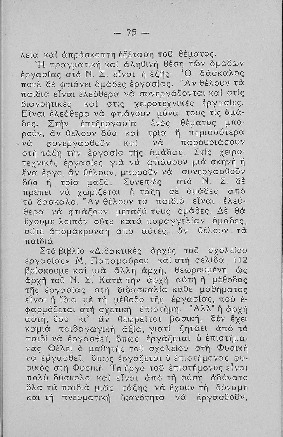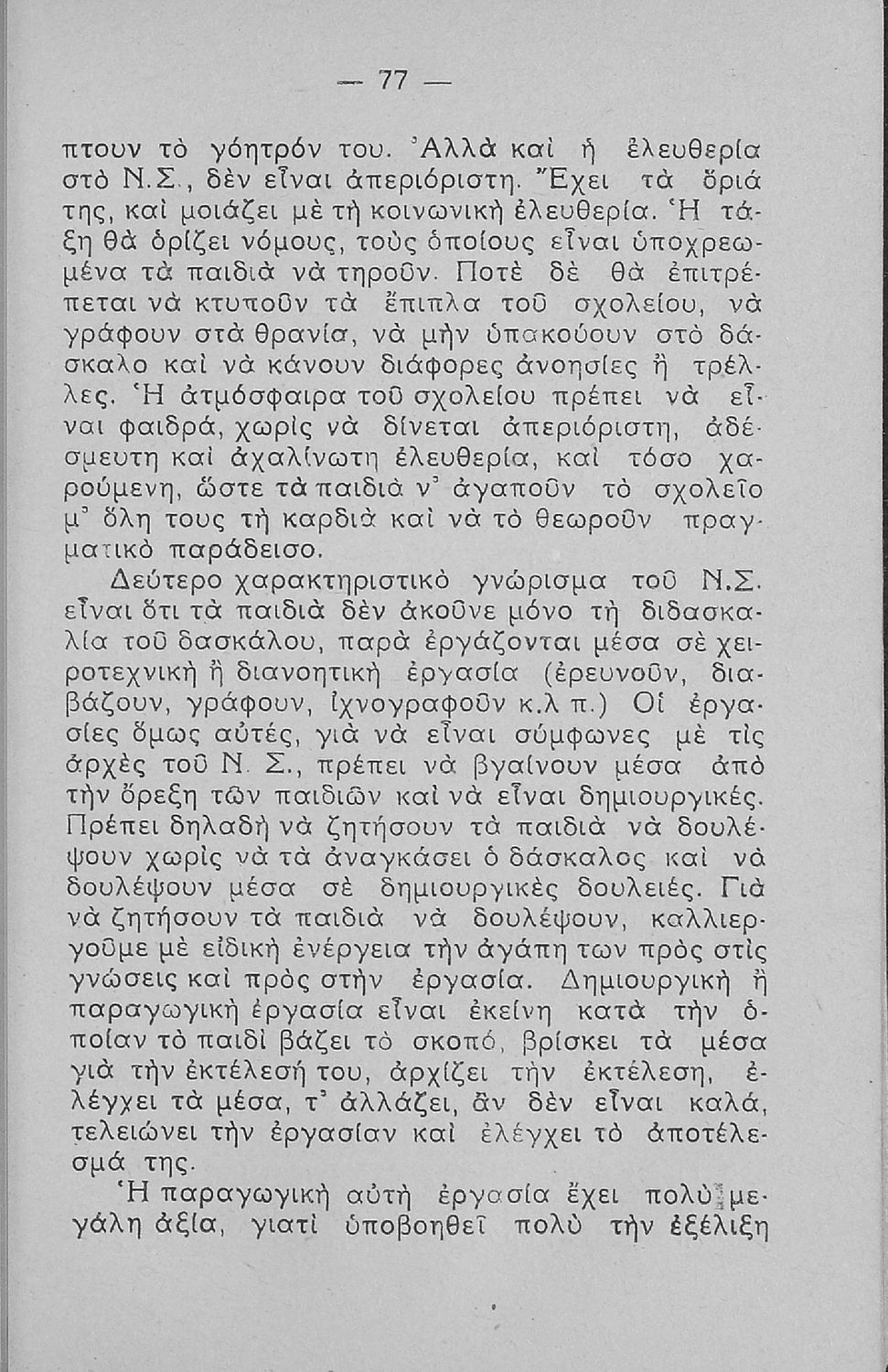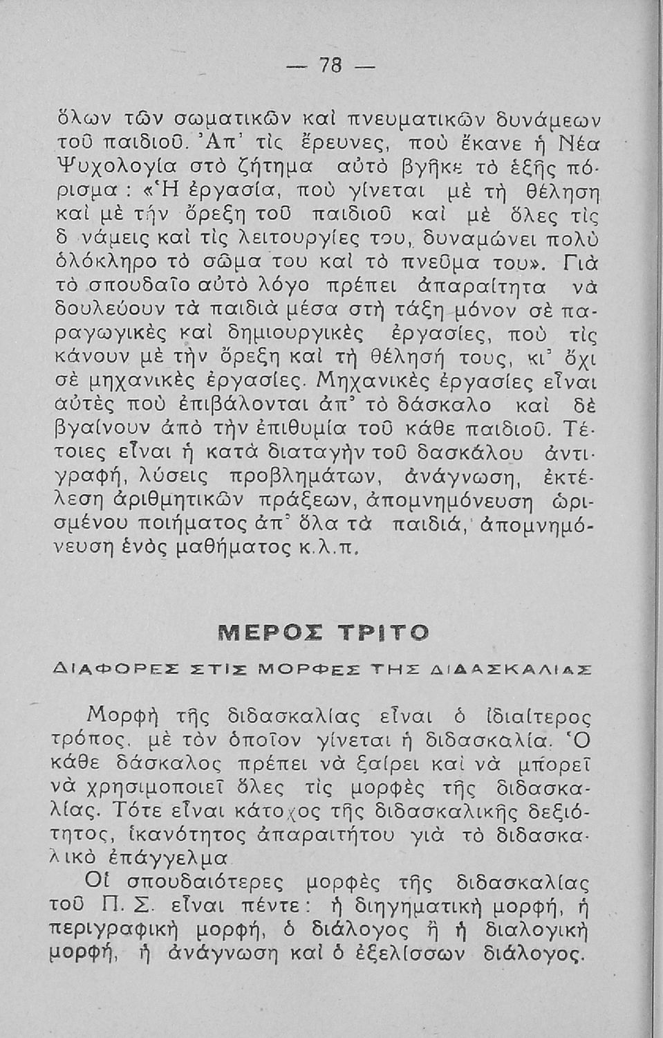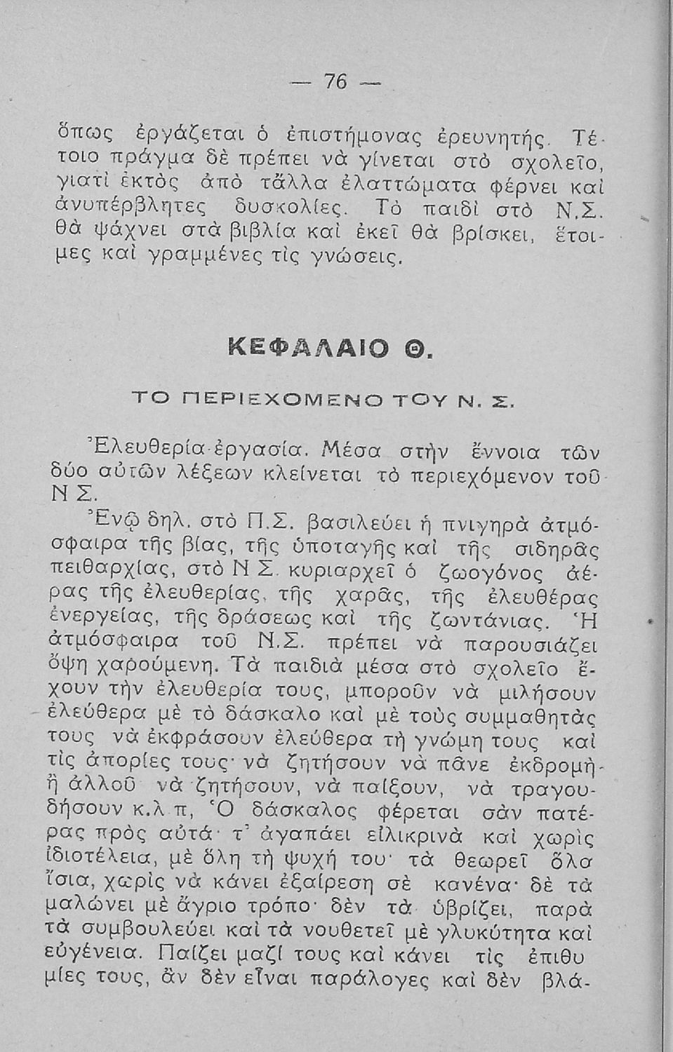 Παιδαγωγικό βοήθημα που απευθύνεται στους δασκάλους και αποτελεί κριτική της ερβαρτιανής παιδαγωγικής από την οπτική της «Νέας Παιδαγωγικής», του «Νέου Σχολείου» ή του «Σχολείου Εργασίας». Ο συγγραφέας ήταν «δημοδιδάσκαλος μετεκπαιδευθείς στο πανεπιστήμιο».