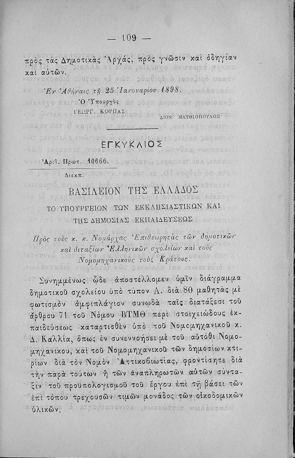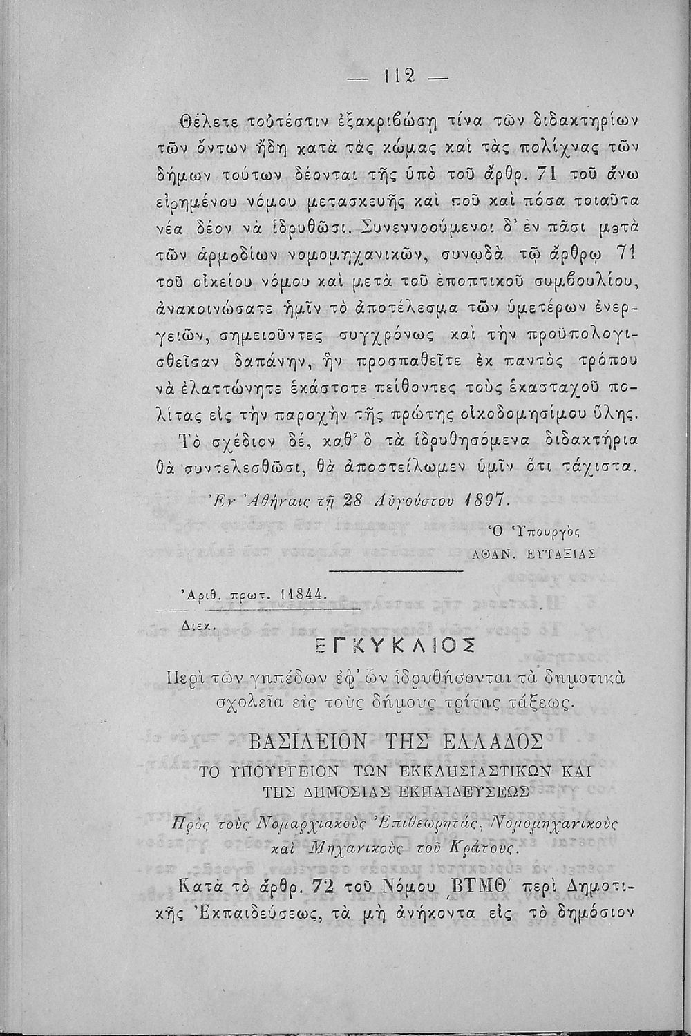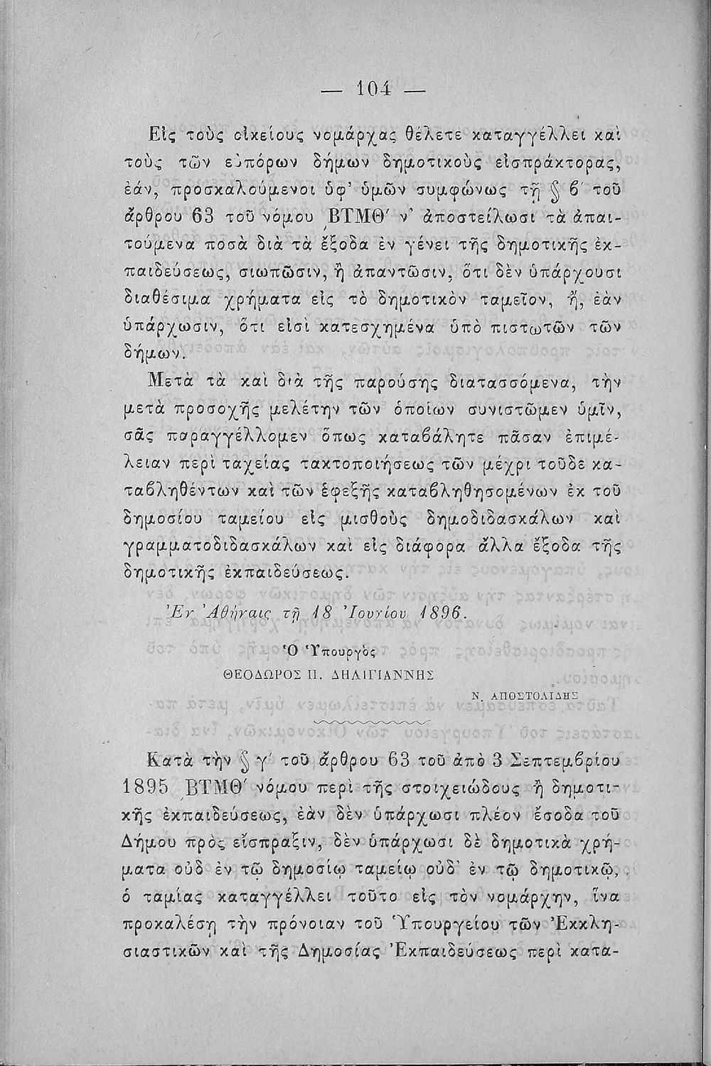 Η νεωτέρα παρ΄ ημίν σχολική νομοθεσία ήτοι συλλογή νόμων βασιλικών διαταγμάτων και υπουργικών εγκυκλίων εις σχολικά ζητήματα αναφερόμενων, τεύχος Α