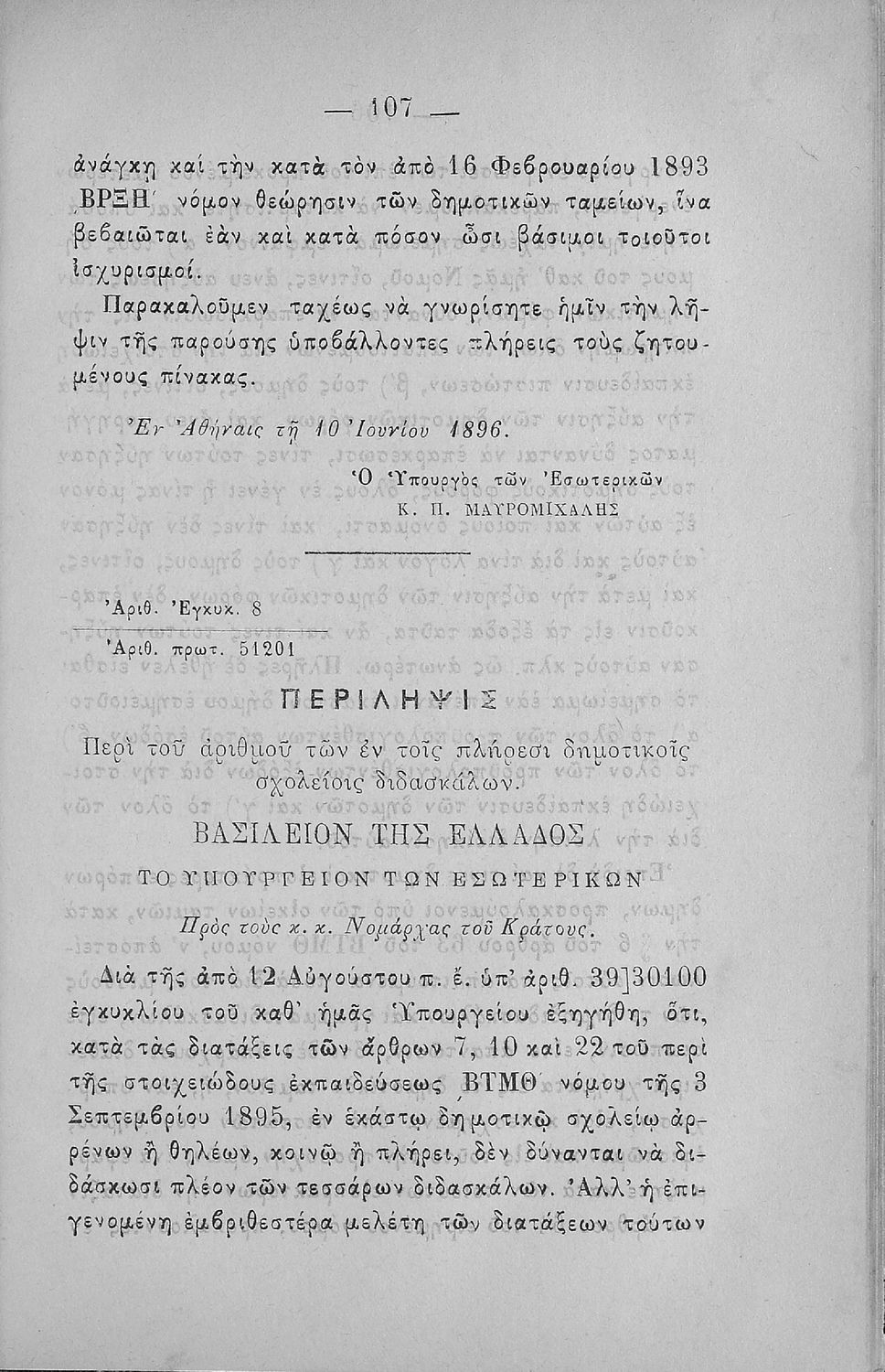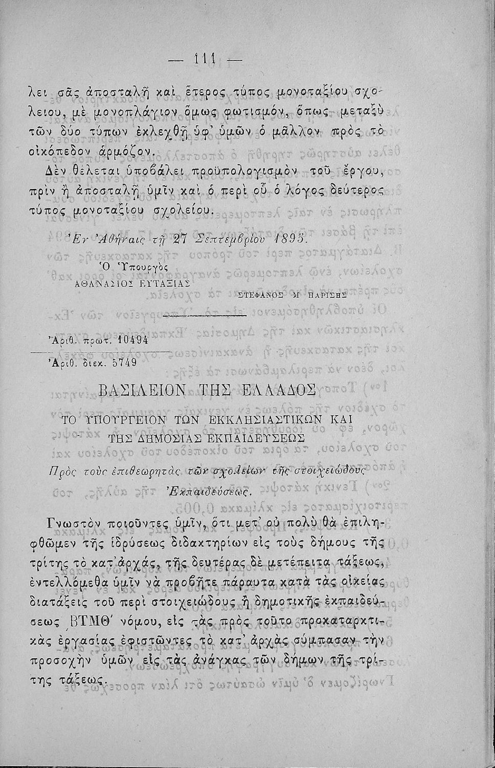 Τίτλος: Η νεωτέρα παρ΄ ημίν σχολική νομοθεσία ήτοι συλλογή νόμων βασιλικών διαταγμάτων και υπουργικών εγκυκλίων εις σχολικά ζητήματα αναφερόμενων, τεύχος Α