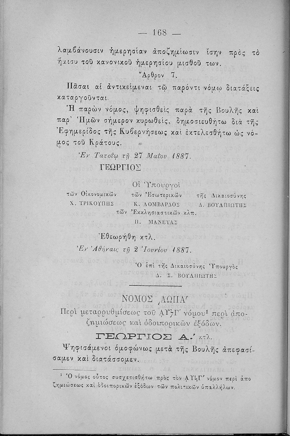 Η νεωτέρα παρ΄ ημίν σχολική νομοθεσία ήτοι συλλογή νόμων βασιλικών διαταγμάτων και υπουργικών εγκυκλίων εις σχολικά ζητήματα αναφερόμενων, τεύχος Α