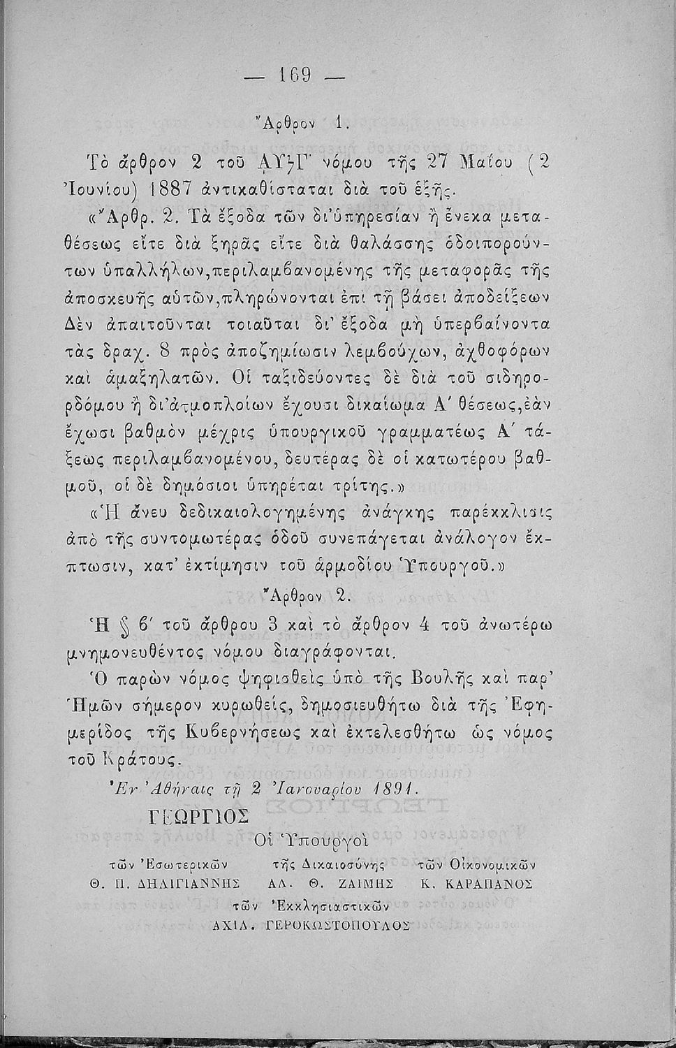 Περιέχει την αιτιολογική έκθεση και το νόμο ΤΞΖ΄ "περί ιερατικών σχολών" και σειρά σχετικών βασιλικών διαταγμάτων και κανονισμών.