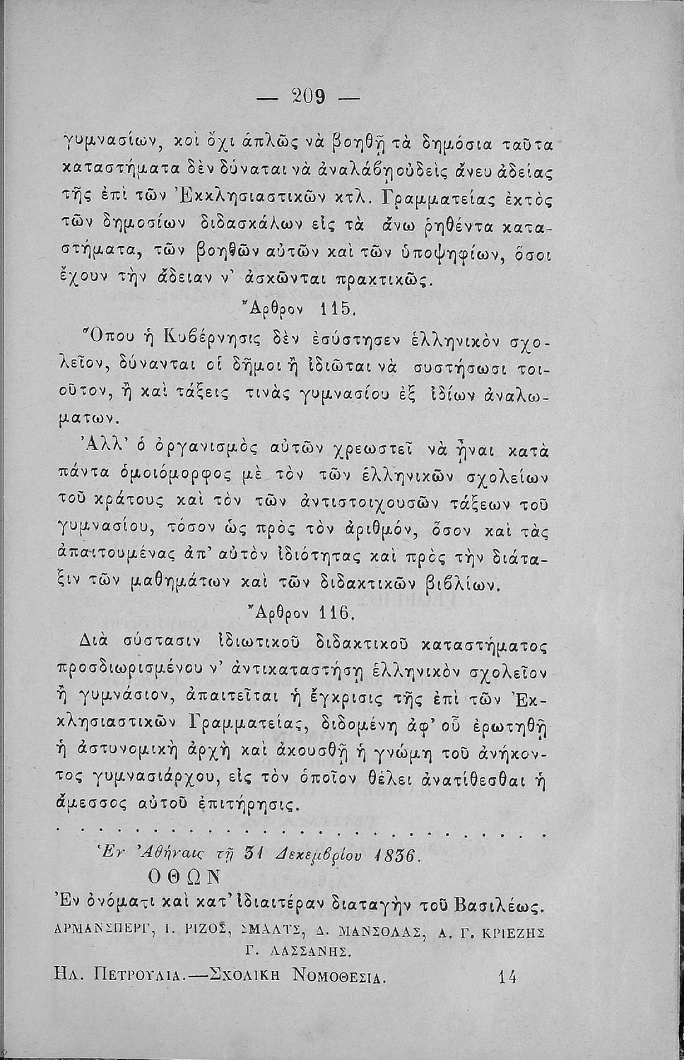 Περιέχει την αιτιολογική έκθεση και το νόμο ΤΞΖ΄ "περί ιερατικών σχολών" και σειρά σχετικών βασιλικών διαταγμάτων και κανονισμών.