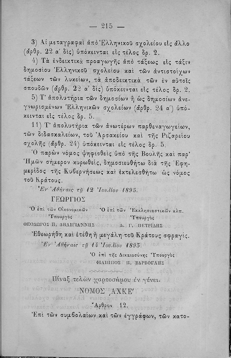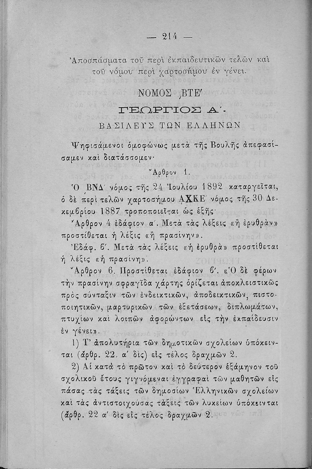 Η νεωτέρα παρ΄ ημίν σχολική νομοθεσία ήτοι συλλογή νόμων βασιλικών διαταγμάτων και υπουργικών εγκυκλίων εις σχολικά ζητήματα αναφερόμενων, τεύχος Α