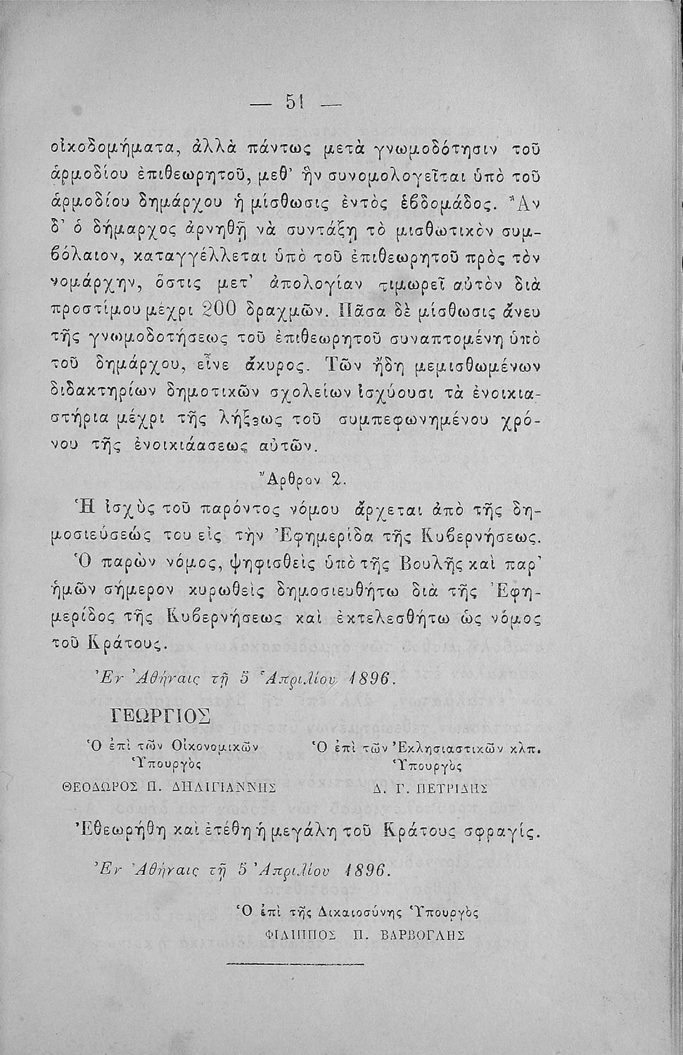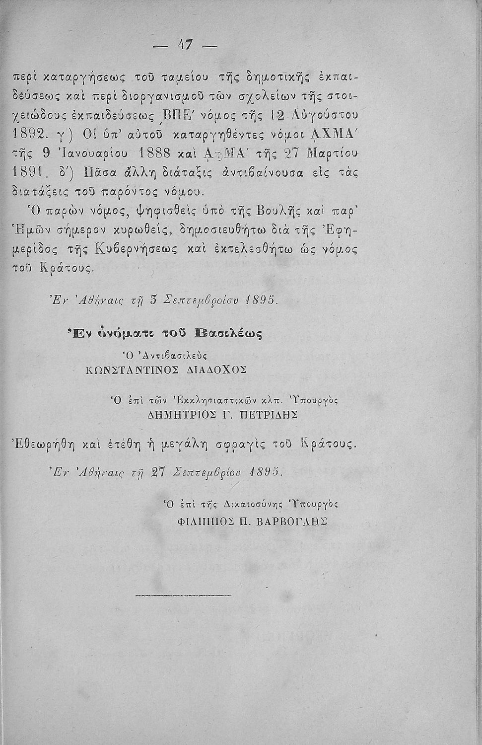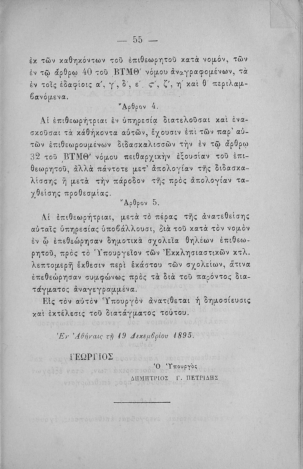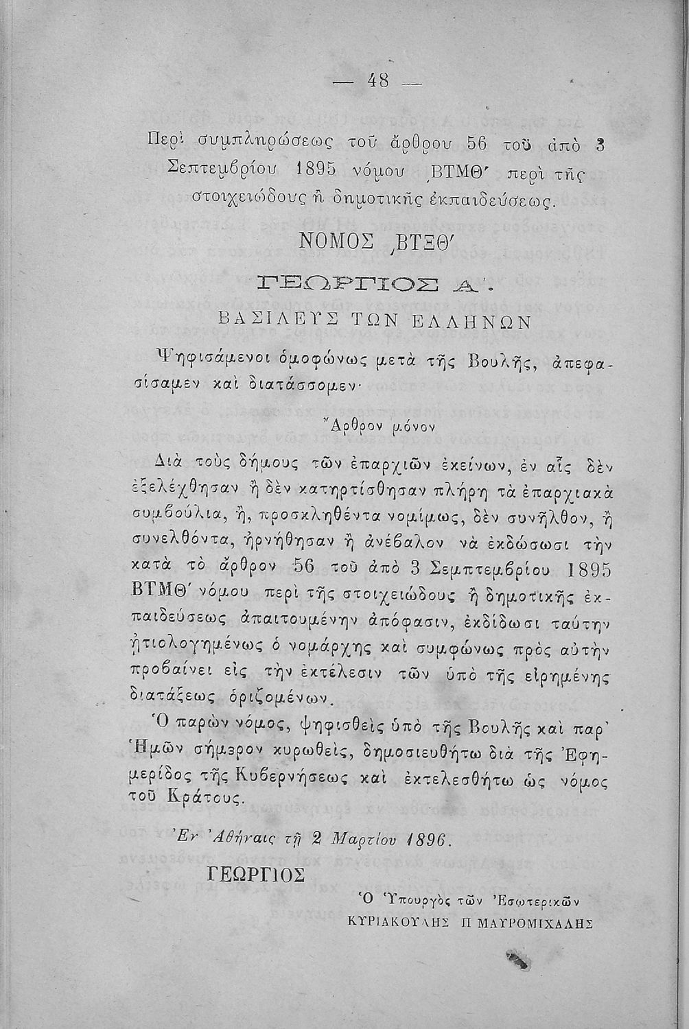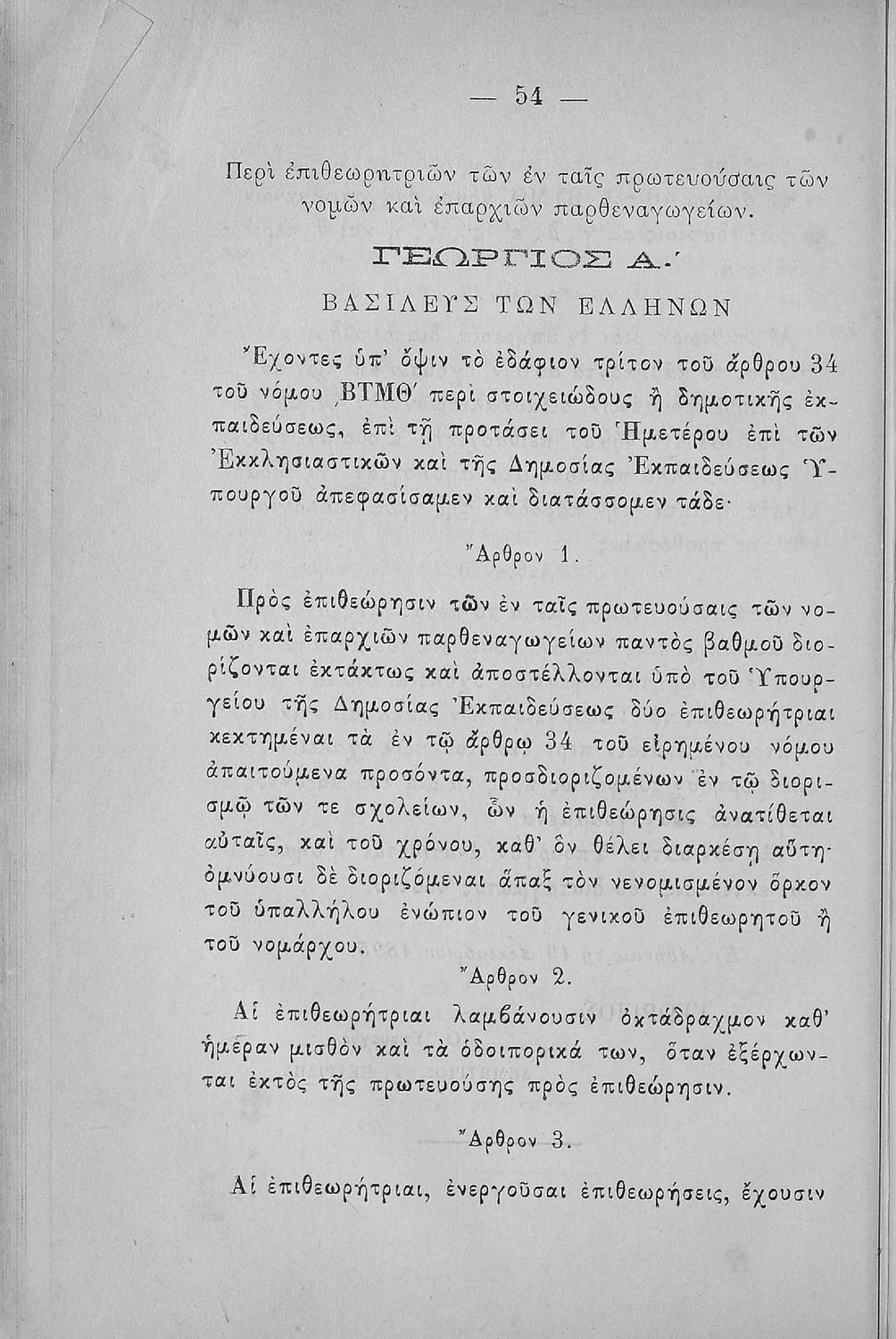 Η νεωτέρα παρ΄ ημίν σχολική νομοθεσία ήτοι συλλογή νόμων βασιλικών διαταγμάτων και υπουργικών εγκυκλίων εις σχολικά ζητήματα αναφερόμενων, τεύχος Α