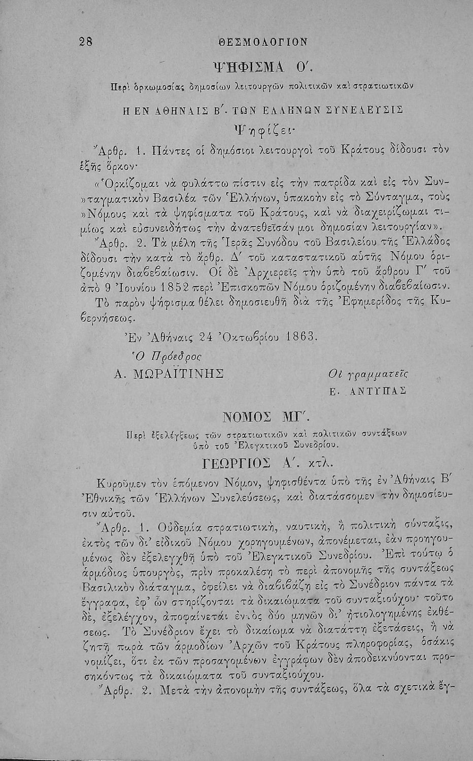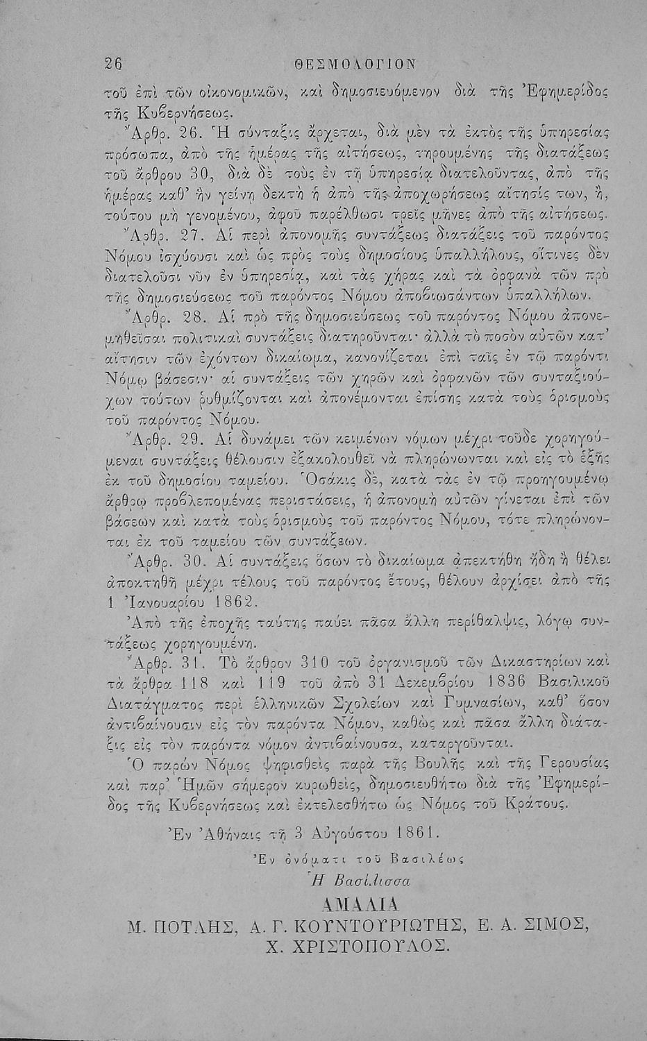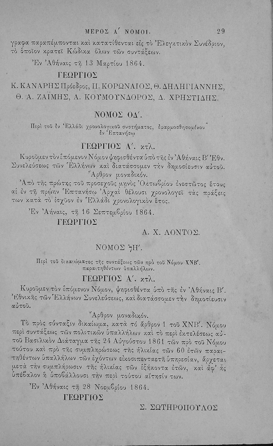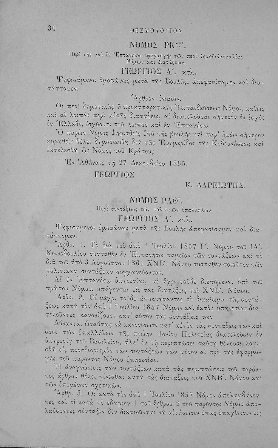 Έκδοση που περιλαμβάνει το σύνταγμα του 1864, νόμους, βασιλικά διατάγματα και εγκυκλίους της περιόδου 1883-1887 που αφορούν τη Δημοτική Εκπαίδευση και τους εκπαιδευτικούς και ιερείς. Ο συγγραφέας ήταν ...