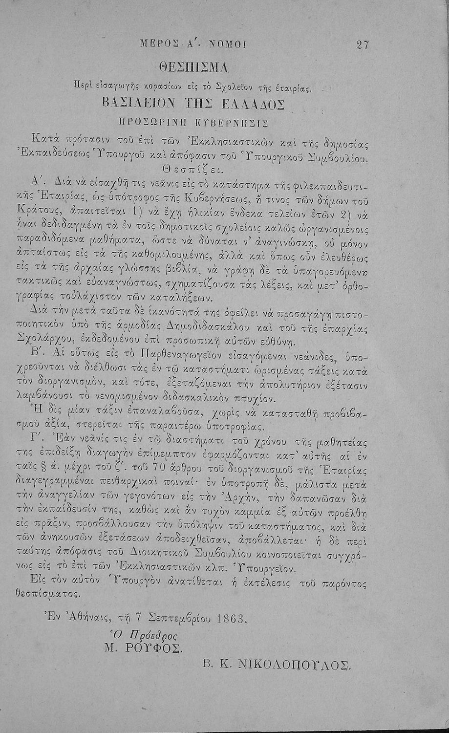Τίτλος: Θεσμολόγιον της δημοτικής εκπαιδεύσεως