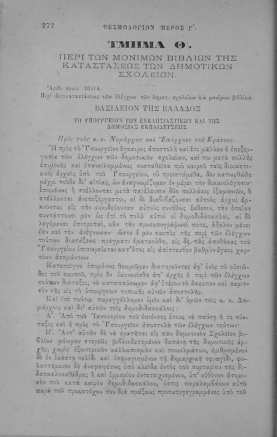 Τίτλος: Θεσμολόγιον της δημοτικής εκπαιδεύσεως