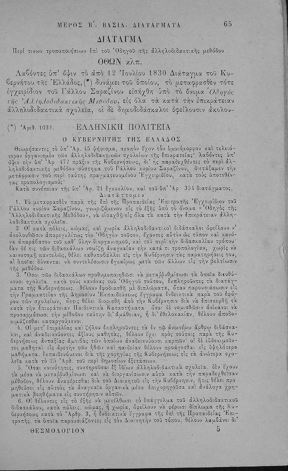 Τίτλος: Θεσμολόγιον της δημοτικής εκπαιδεύσεως