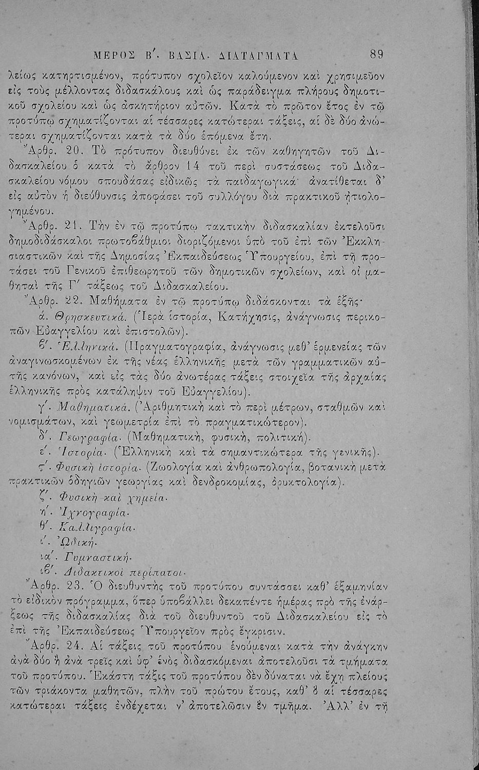 Τάξη:  Β' Γυμνασίου / Α' Διδασκαλείων Δημοτικής Εκπαίδευσης