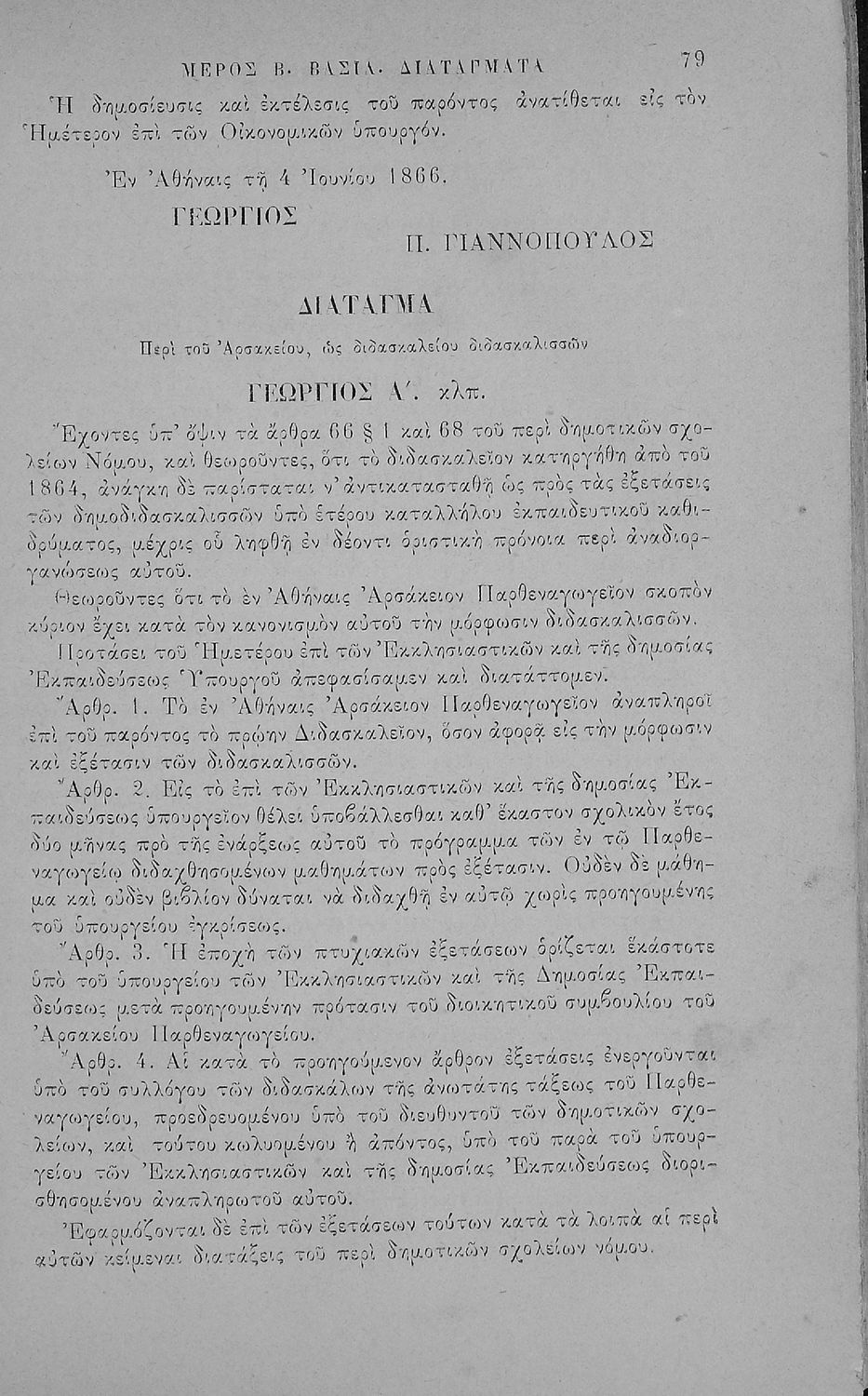 Τάξη:  Τετρατάξιο Γυμνάσιο / Γ' Αστικού Σχολείου Θηλέων / Διδασκαλεία Δημοτικής Εκπαίδευσης
