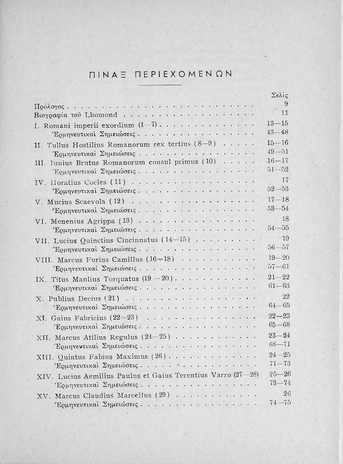 Σχολικό εγχειρίδιο Λατινικών που περιέχει 64 αποσπάσματα από το βιβλίο του Lhomond και παρουσιάζει βίους επιφανών Ρωμαίων από το 753 π.Χ μέχρι το 14 μ.Χ.