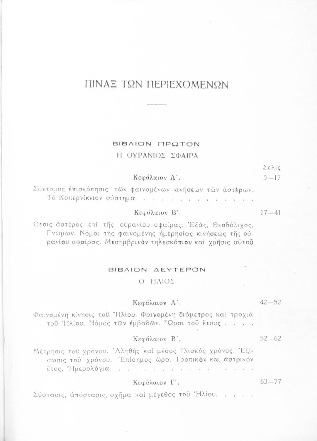 Βαθμίδα εκπαίδευσης: Δευτεροβάθμια Τάξη: ΣΤ' Γυμνασίου Μάθημα: Κοσμογραφία Γλώσσα: Καθαρεύουσα Παρουσίαση περιεχομένου: Σχολικό εγχειρίδιο Κοσμογραφίας ΣΤ΄ Γυμνασίου που εστιάζει στην κίνηση των πλανητών και στον τρόπο υπολογισμού της τροχιάς τους. |