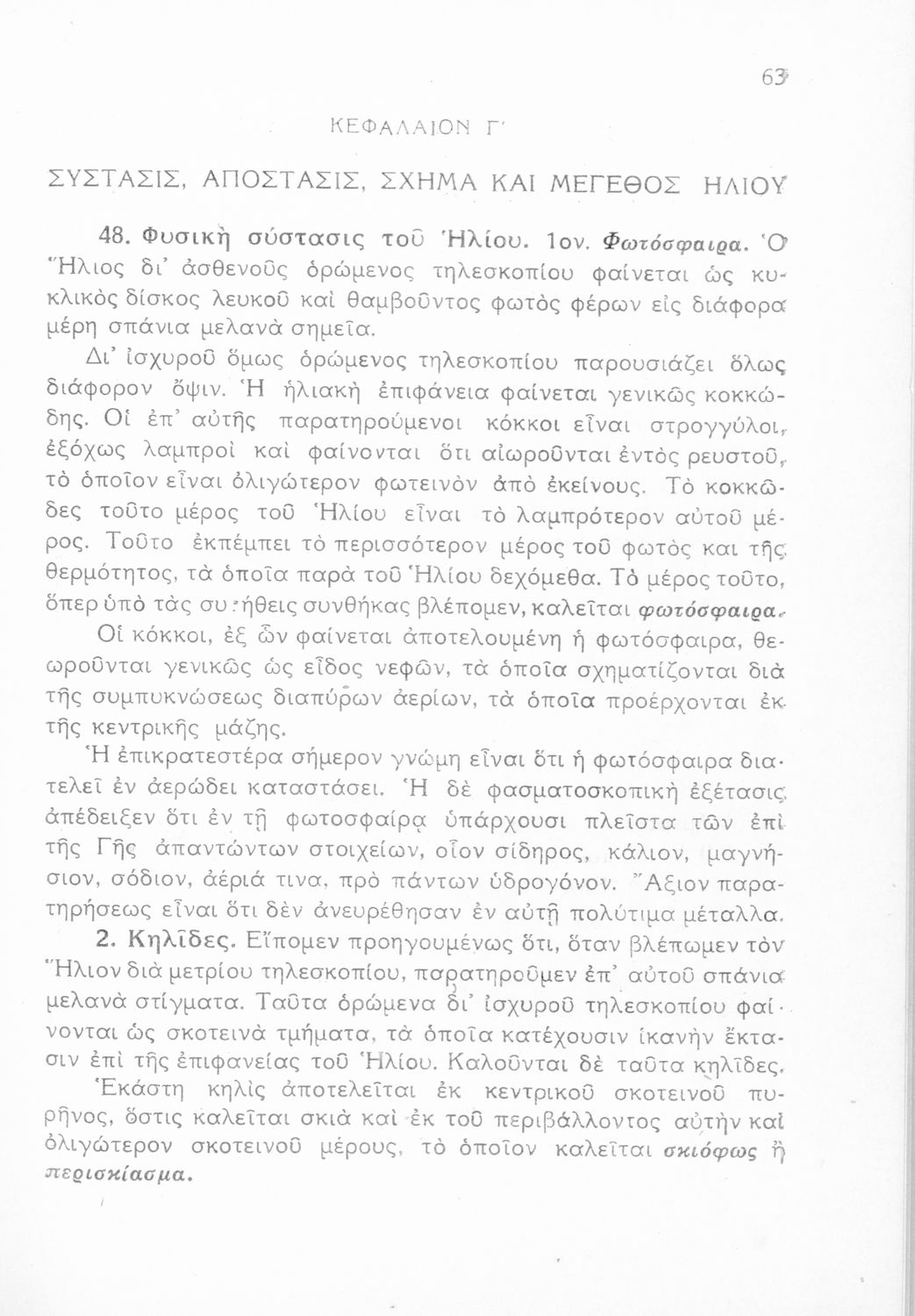 Κωδικός αναγνώρισης: 01-18974 Τίτλος: Κοσμογραφία δια την ΣΤ΄ τάξιν Γυμνασίων παλαιού τύπου Συγγραφέας: Νικόλαος Δ. Νικολάου Μέγεθος και υπόστρωμα: Σχολικό εγχειρίδιο, 20εκ., μαλακό εξώφυλλο, 211 σελίδες. Σκίτσα και φωτογραφίες (ασπρόμαυρα). |