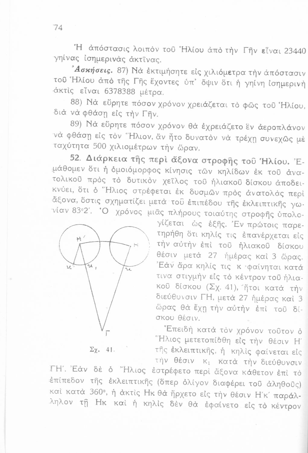 520 ## _aΣχολικό εγχειρίδιο Κοσμογραφίας ΣΤ΄ Γυμνασίου που εστιάζει στην κίνηση των πλανητών και στον τρόπο υπολογισμού της τροχιάς τους.