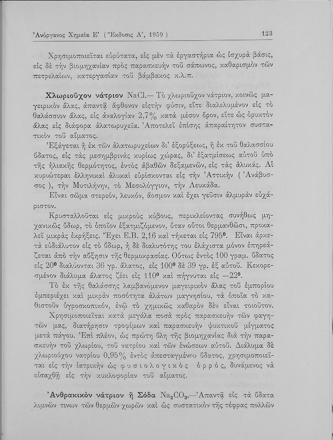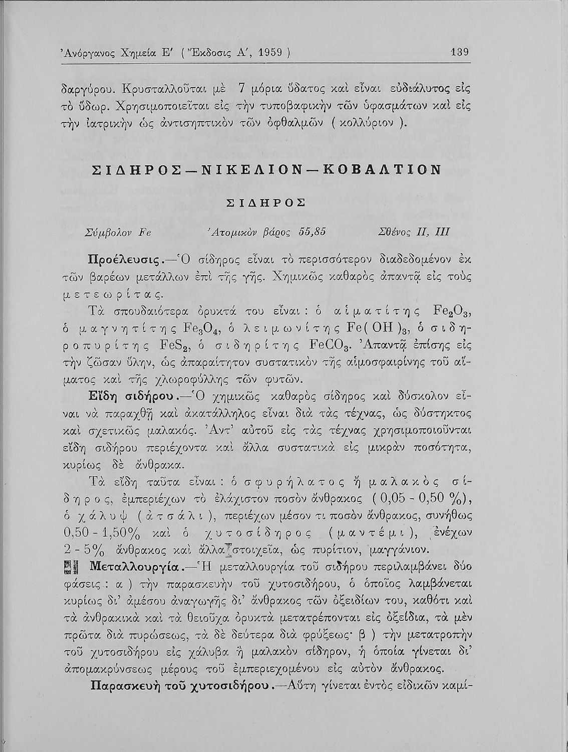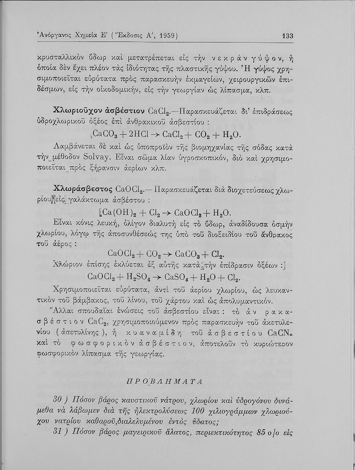 Στοιχεία Ανοργάνου Χημείας Ε΄ ΄ τάξεως Εξαταξίου Γυμνασίου