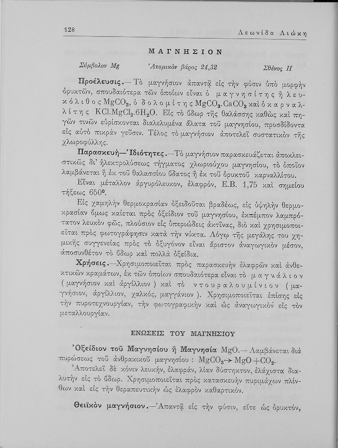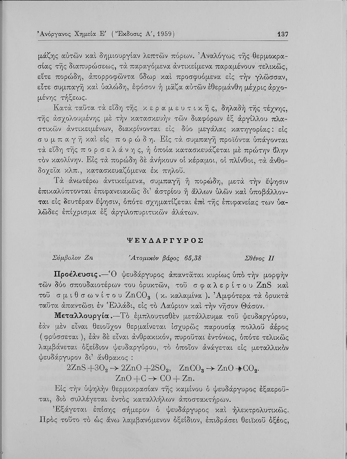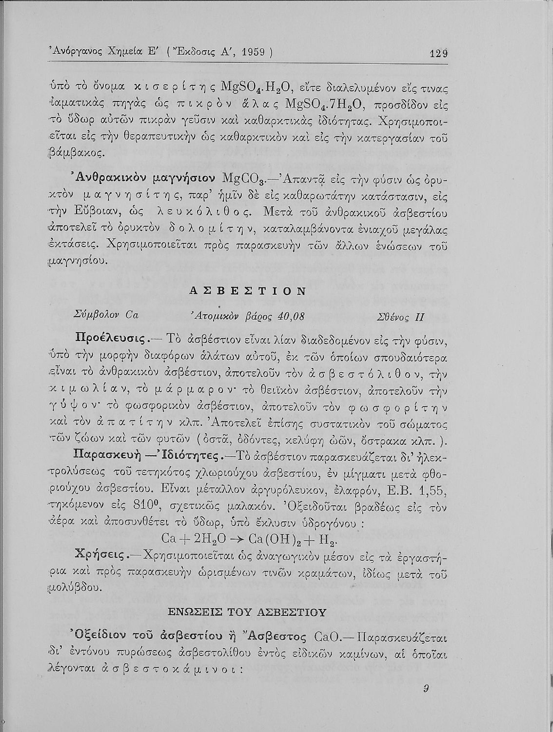 Στοιχεία Ανοργάνου Χημείας Ε΄ ΄ τάξεως Εξαταξίου Γυμνασίου