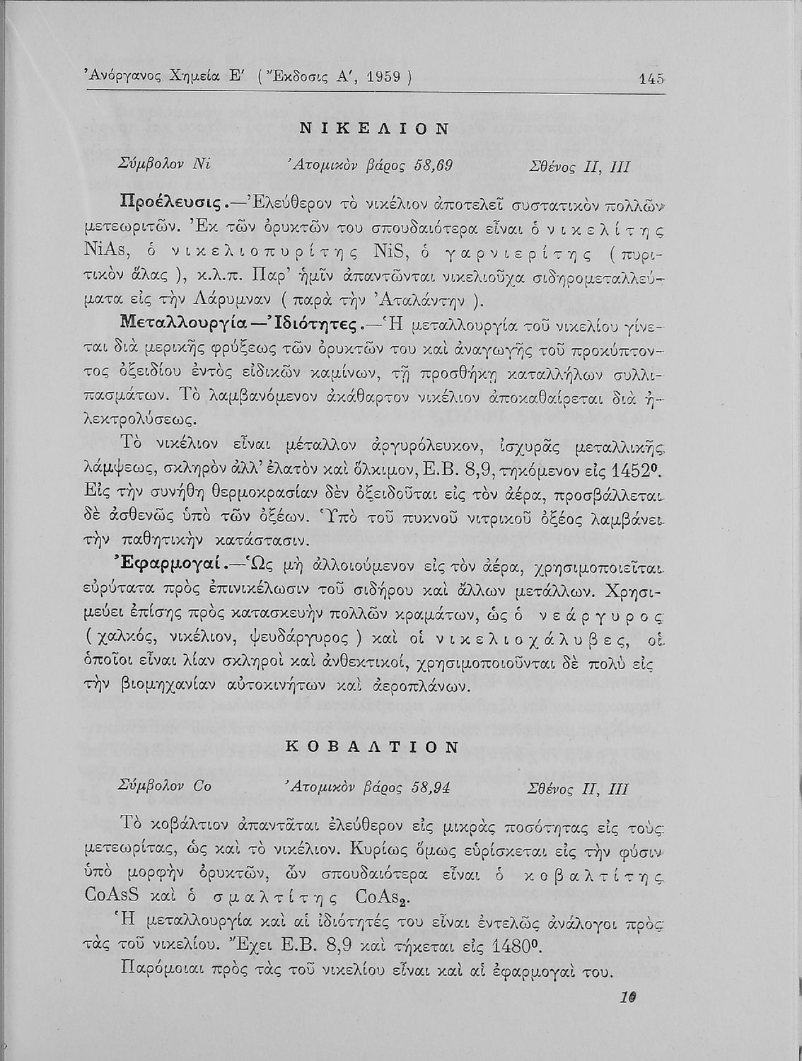 LDR 01440 2200217 4500 035 ## _a01-18977 040 ## _aΙνστιτούτο Εκπαιδευτικής Πολιτικής 041 ## _ael 100 ## _aΛεωνίδας Σπ. Λιώκης 110 ## _a18977 245 0# _aΣτοιχεία Ανοργάνου Χημείας Ε΄ ΄ τάξεως Εξαταξίου Γυμνασίου 250 ## _a1η Έκδοση 260 ## _aΑθήνα _c1959 300 ## _a187 _bΣχέδια και σχήματα (ασπρόμαυρα) 520 ## _aΣχολικό εγχειρίδιο Χημείας που προσδιορίζει τη σύσταση της ύλης (ατομική θεωρία, θεμελιώδεις νόμοι της Χημείας), τις χημικές αντιδράσεις και εξισώσεις καθώς περιγράφονται οι χημικές ενώσεις (οξέα, βάσεις, άλατα). Γίνεται αναλυτική περιγραφή στοιχείων αμετάλλων και μετάλλων με το προσδιορισμό των ενώσεων και των ιδιοτήτων τους. 521 ## _aΕ' Γυμνασίου 522 ## _aΕλλάδα 546 ## _aΚαθαρεύουσα 563 ## _aΣκληρό Εξώφυλλο 583 ## _a965/23-7-1959 _c1959 650 #4 _aΑμέταλλα _aΆτομο _aΚράματα _aΡαδιενέργεια _aΎλη _aΧημικές ενώσεις