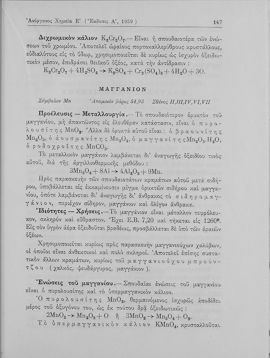 Κωδικός αναγνώρισης: 01-18977 Τίτλος: Στοιχεία Ανοργάνου Χημείας Ε΄ ΄ τάξεως Εξαταξίου Γυμνασίου Συγγραφέας: Λεωνίδας Σπ. Λιώκης Μέγεθος και υπόστρωμα: Σχολικό εγχειρίδιο, σκληρό εξώφυλλο, 187 σελίδες. Σχέδια και σχήματα (ασπρόμαυρα). |