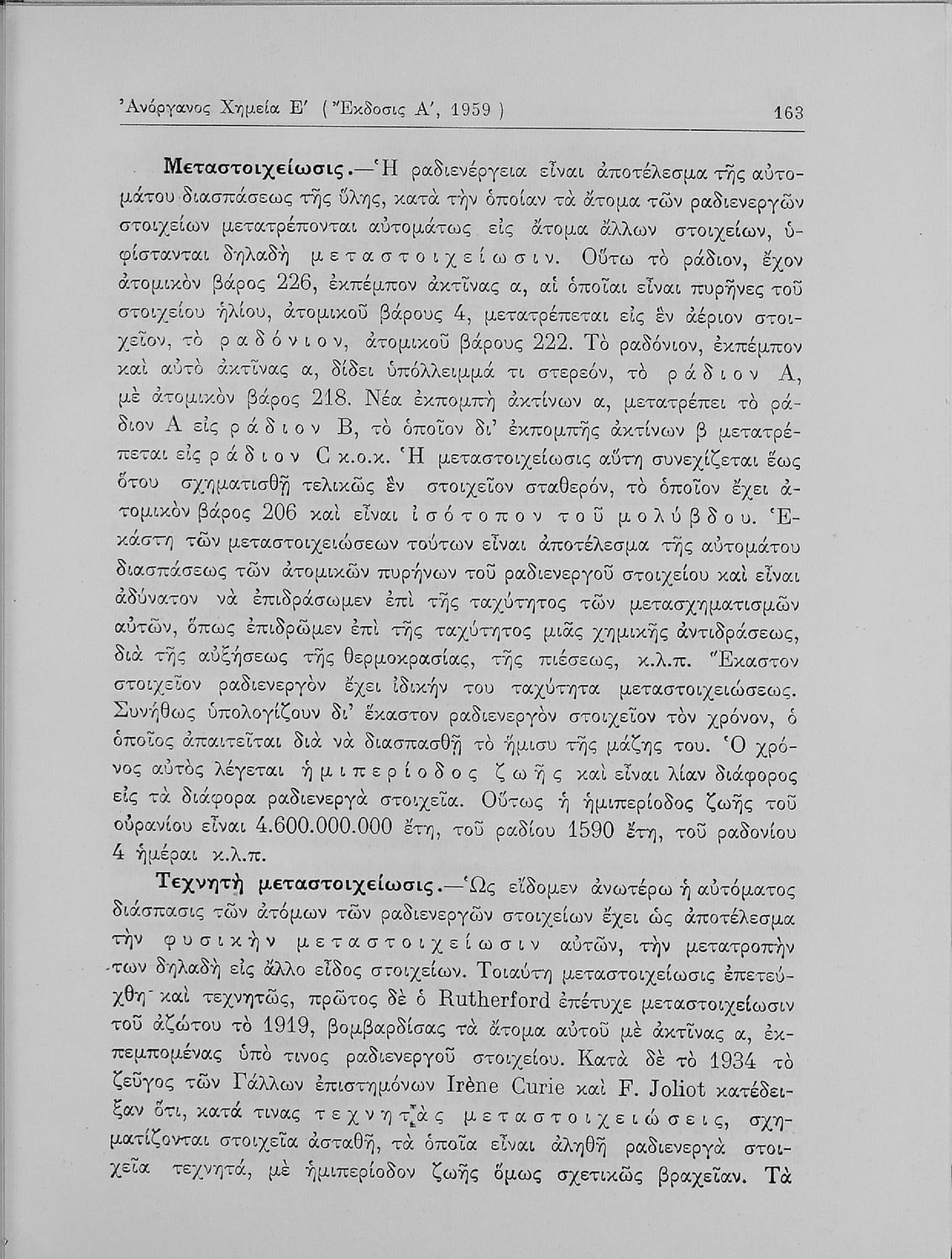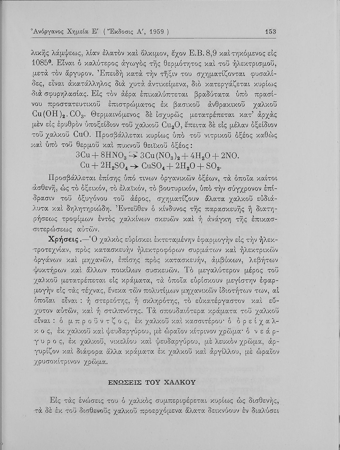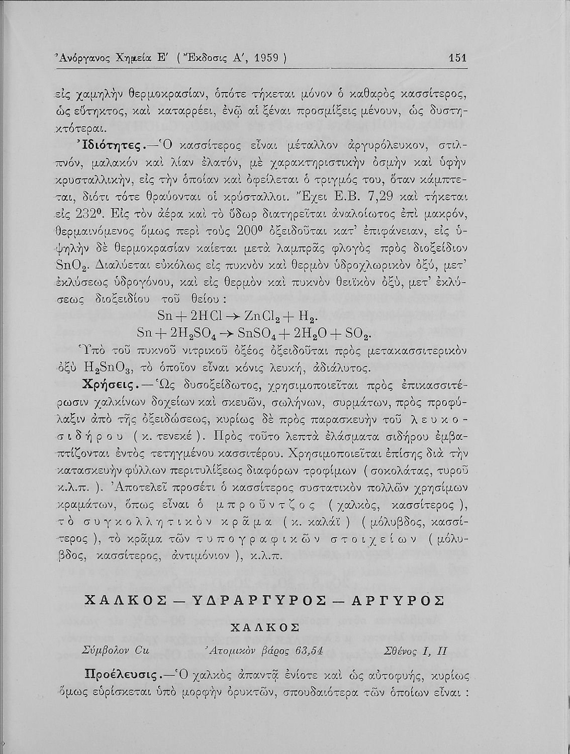 Βαθμίδα εκπαίδευσης: Δευτεροβάθμια Τάξη: Ε' Γυμνασίου Μάθημα: Χημεία Γλώσσα: Καθαρεύουσα Παρουσίαση περιεχομένου: Σχολικό εγχειρίδιο Χημείας που προσδιορίζει τη σύσταση της ύλης (ατομική θεωρία, θεμελιώδεις νόμοι της Χημείας), τις χημικές αντιδράσεις και εξισώσεις καθώς περιγράφονται οι χημικές ενώσεις (οξέα, βάσεις, άλατα). Γίνεται αναλυτική περιγραφή στοιχείων αμετάλλων και μετάλλων με το προσδιορισμό των ενώσεων και των ιδιοτήτων τους. |