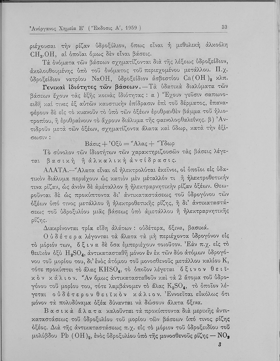 Στοιχεία Ανοργάνου Χημείας Ε΄ ΄ τάξεως Εξαταξίου Γυμνασίου