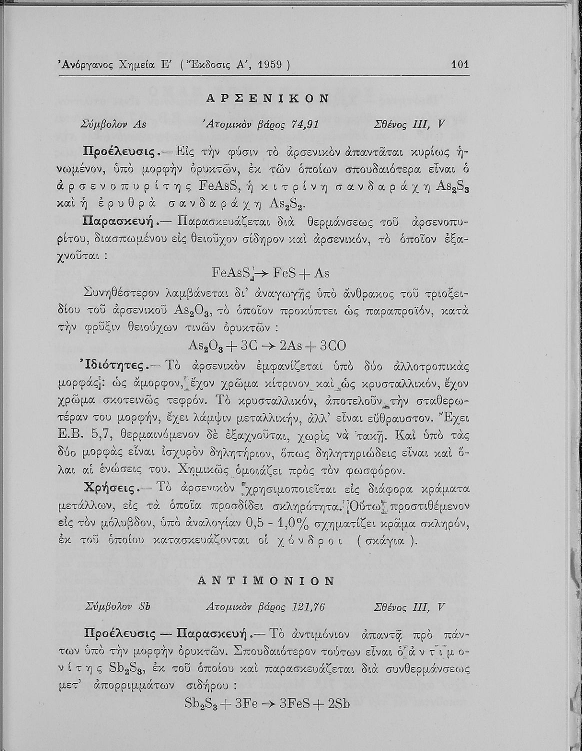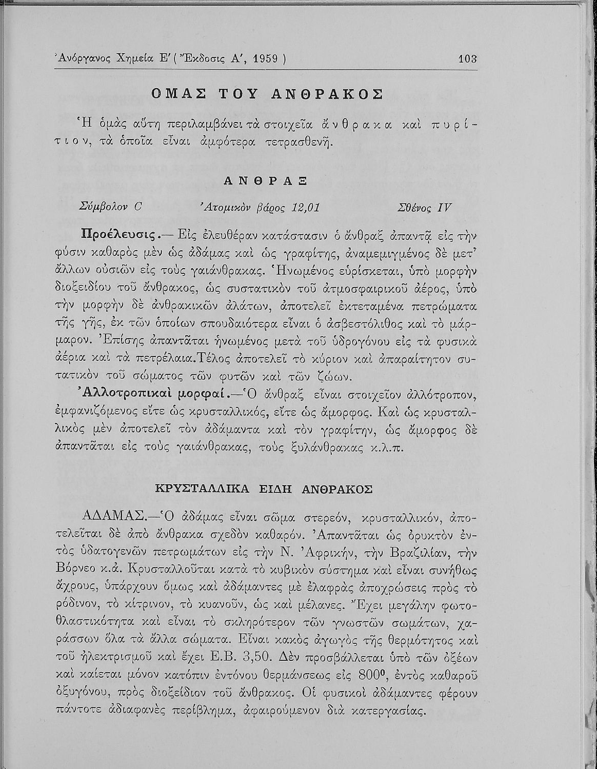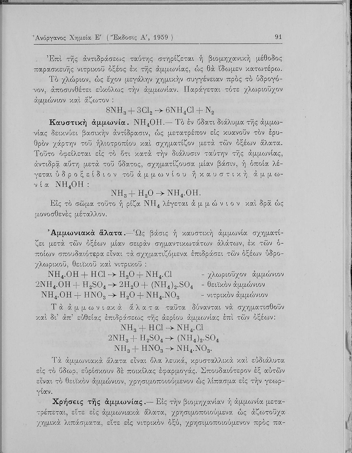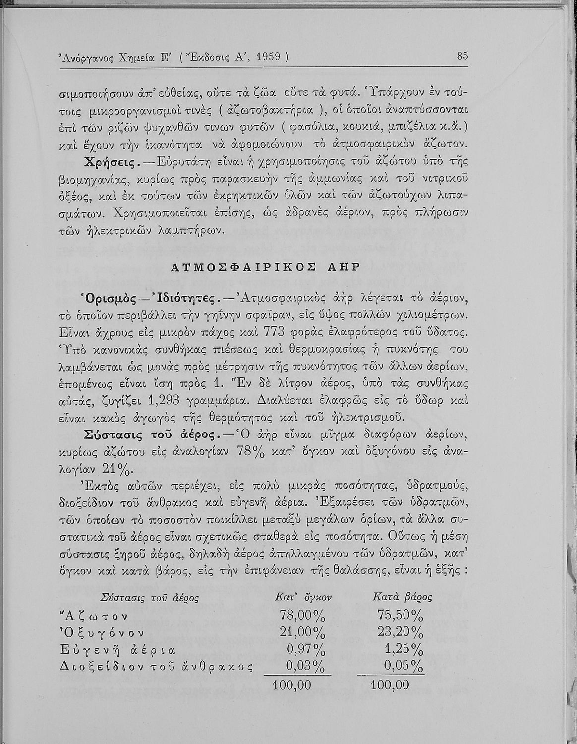Στοιχεία Ανοργάνου Χημείας Ε΄ ΄ τάξεως Εξαταξίου Γυμνασίου