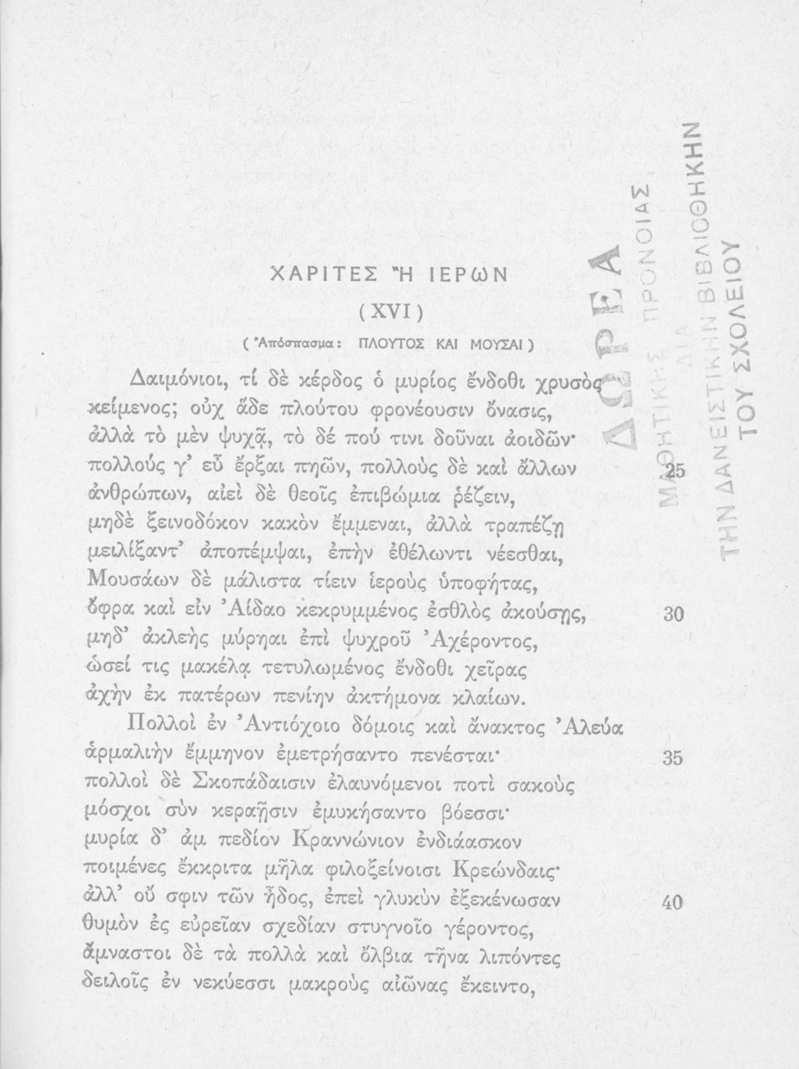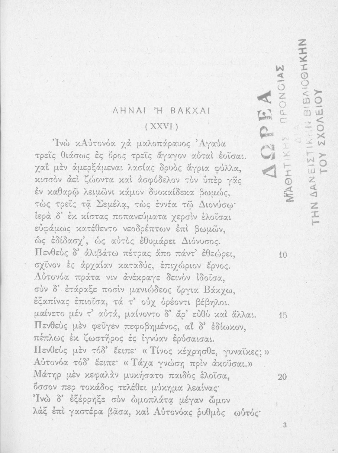 Τίτλος: Θεοκρίτου Ειδύλλια δια την ΣΤ΄ Τάξιν των Γυμνασίων