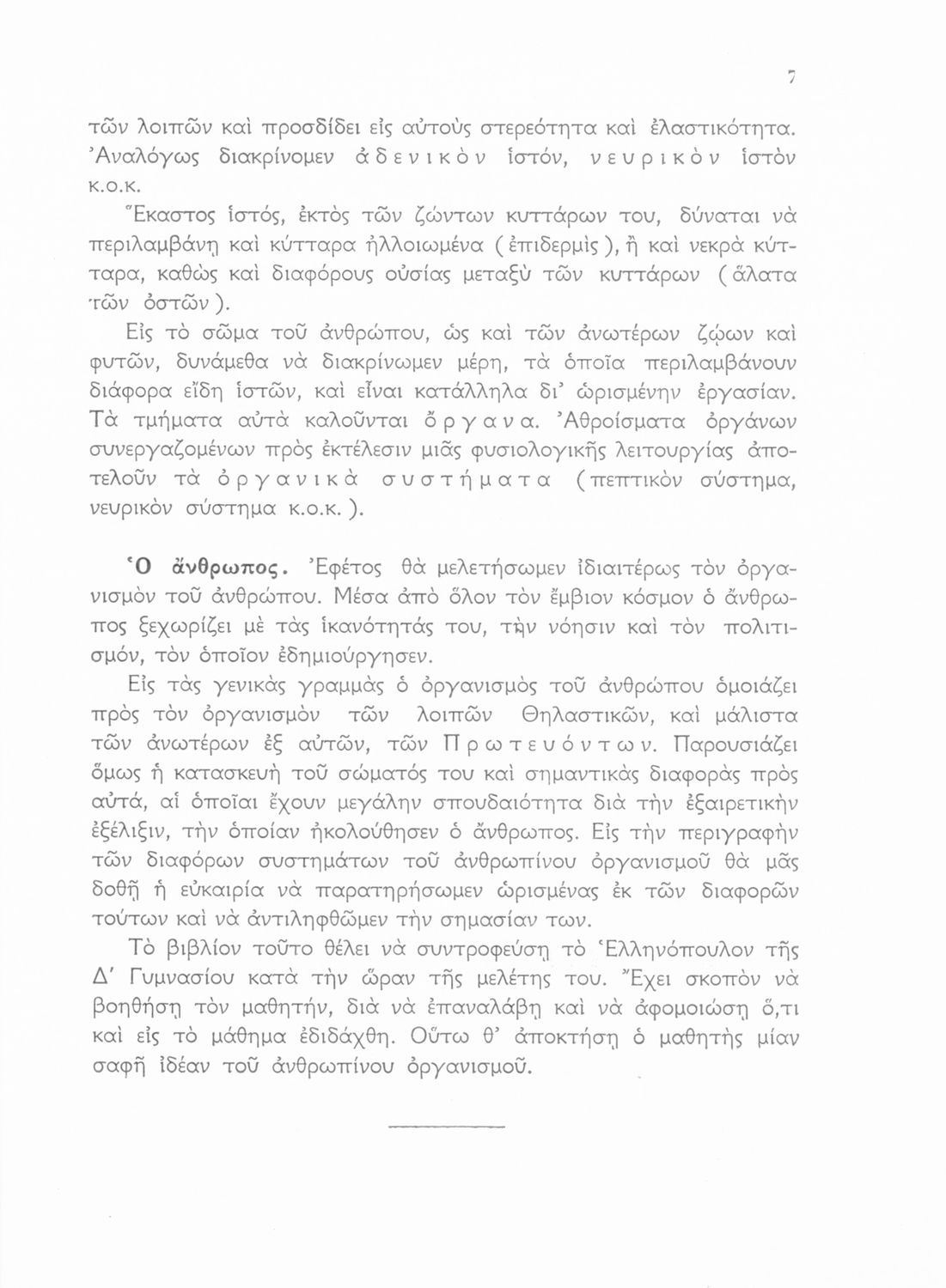 Μάθημα: Ανθρωπολογία Γλώσσα: Απλή καθαρεύουσα Παρουσίαση περιεχομένου: Σχολικό εγχειρίδιο Ανθρωπολογίας που εστιάζει στην κατασκευή, ανάπτυξη και λειτουργία του ανθρώπινου οργανισμού, και τη σχέση του ανθρώπου με το φυσικό περιβάλλον. Περιέχει και αναφορά στις ανθρώπινες φυλές. |