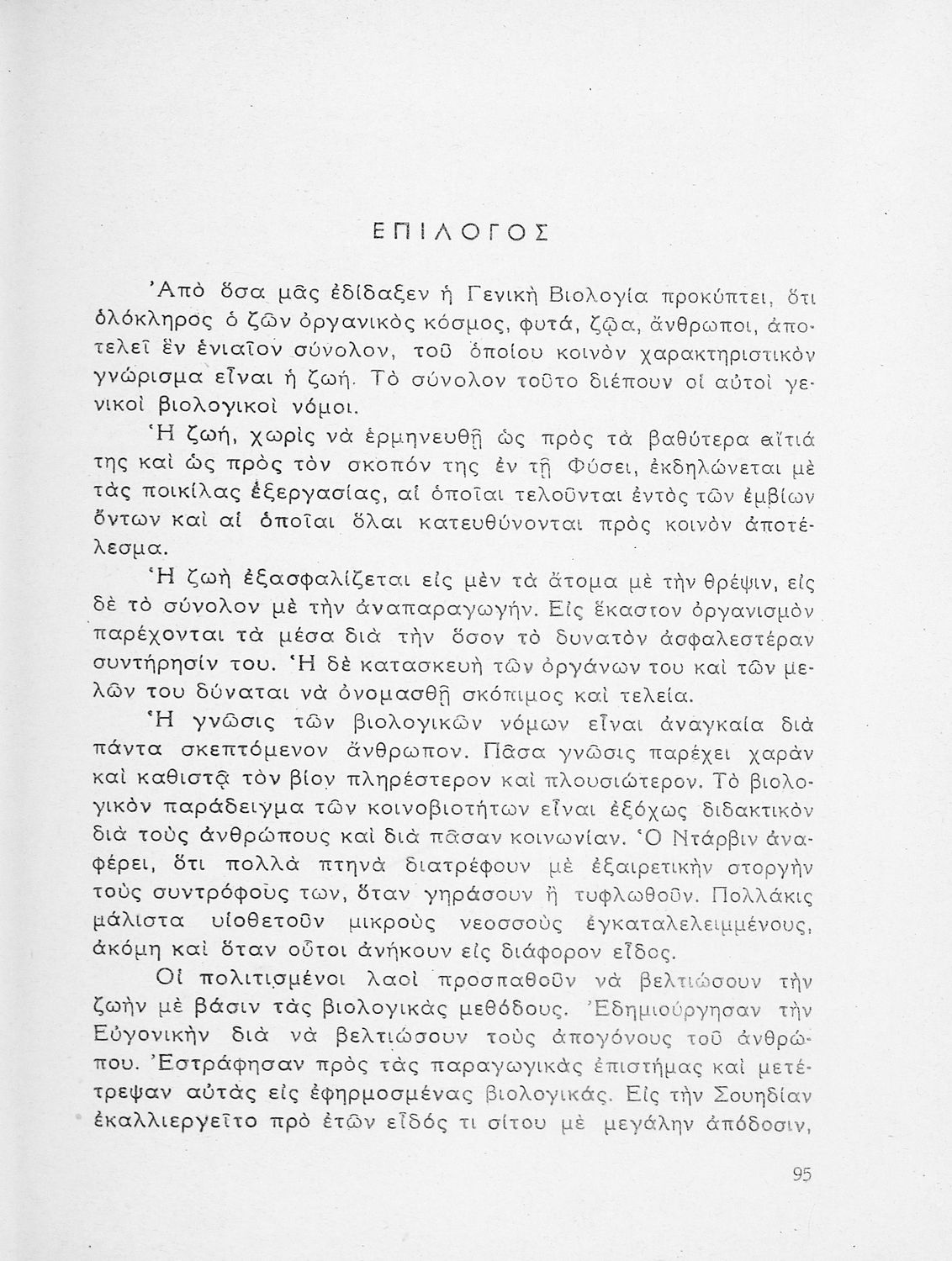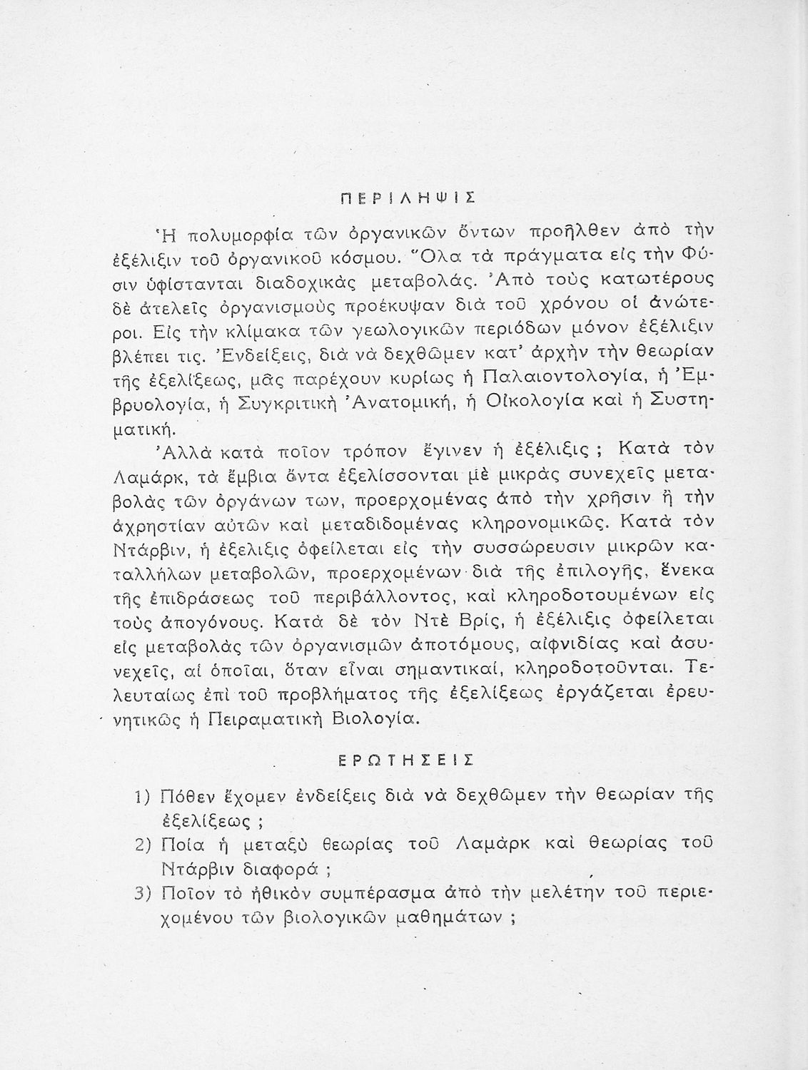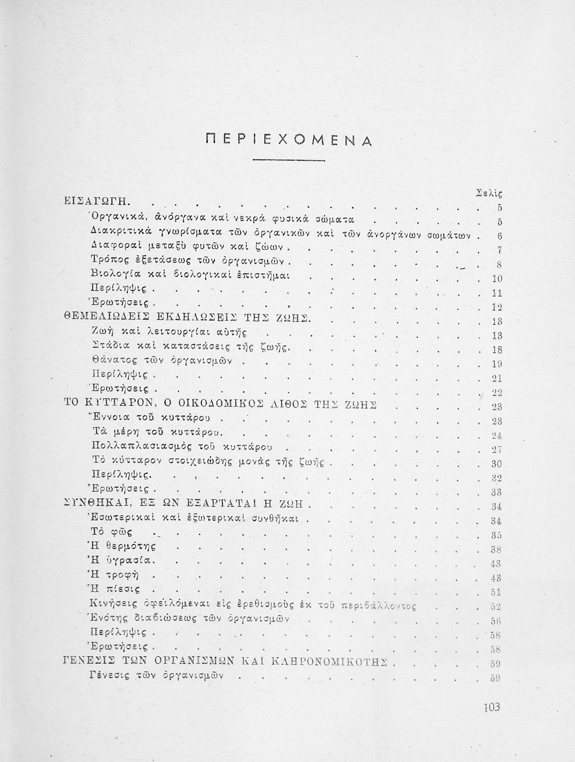 Σχολικό εγχειρίδιο Βιολογίας Δ΄ Γυμνασίου που εστιάζει στις συνθήκες γέννησης, μεταβολής και θανάτου των έμβιων οργανισμών. Ο συγγραφέας ήταν καθηγητής της γενικής Βιολογίας στο Πανεπιστήμιο Αθηνών.