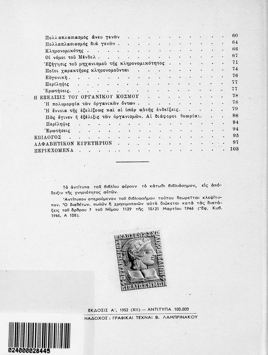 [1952, 1η Έκδοση]