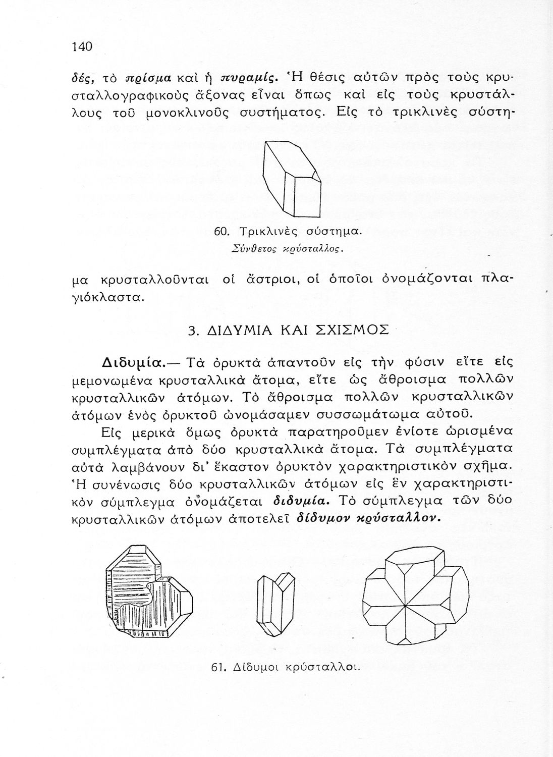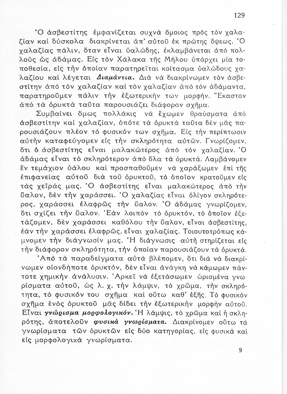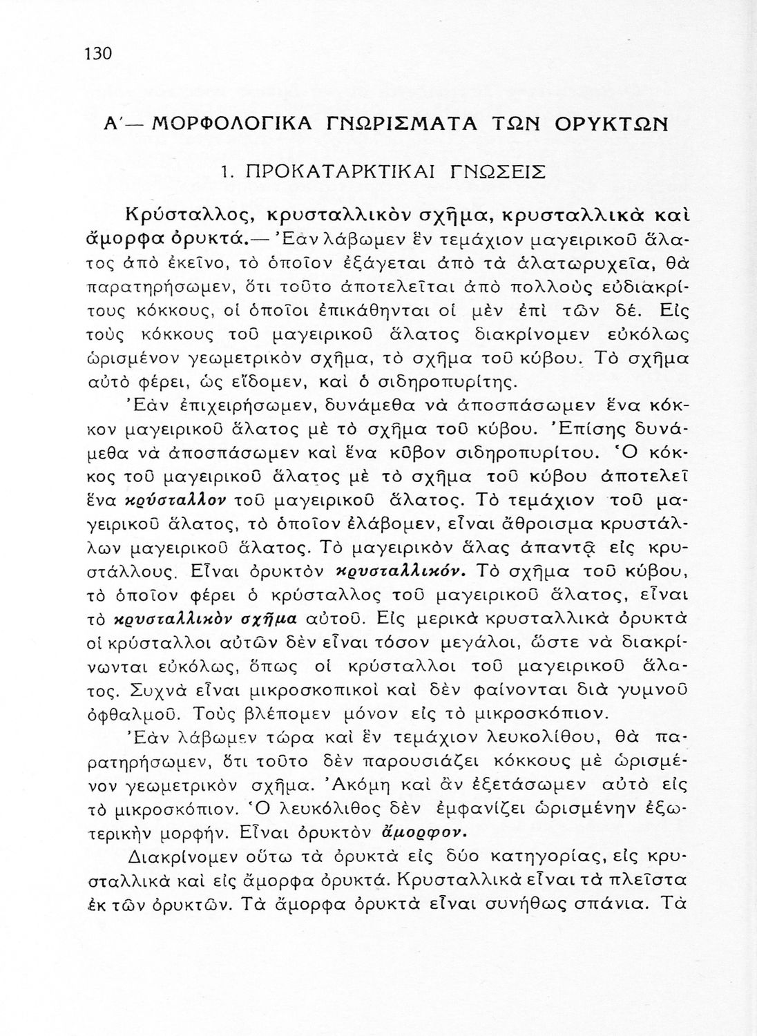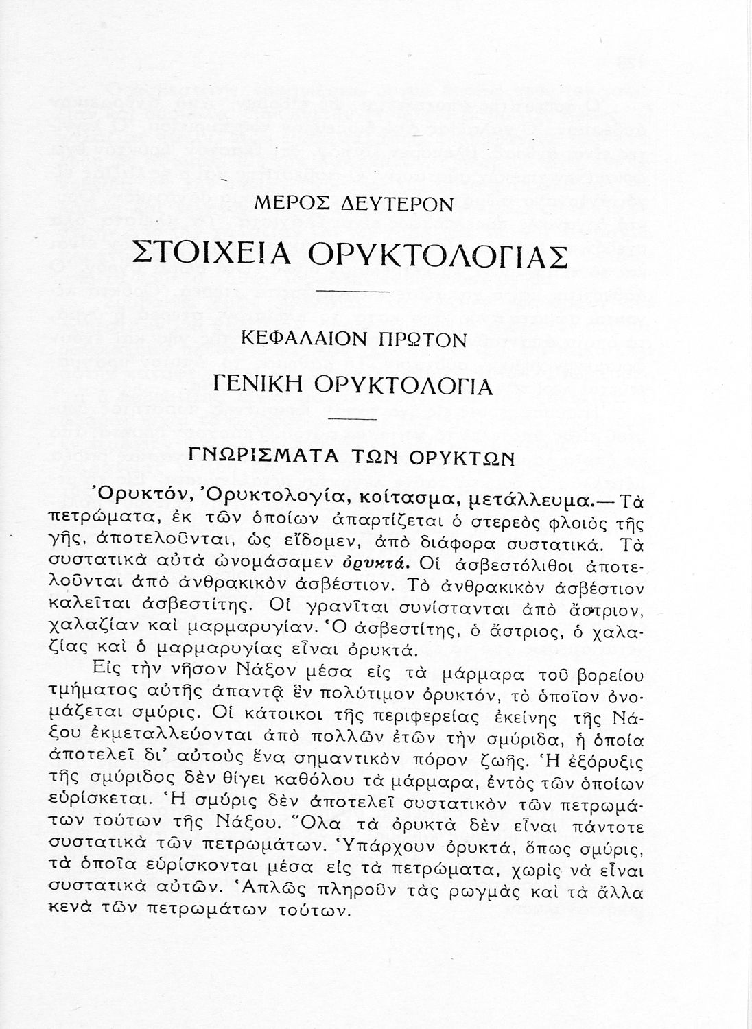 Σχολικό εγχειρίδιο Γεωλογίας/Ορυκτολογίας για την Δ΄ τάξη των Εξαταξίων Γυμνασίων που παρουσιάζει τα ορυκτά με βάση την κλάση στην οποία ανήκουν. Το τμήμα της γεωλογίας εστιάζει στους γεωλογικούς αιώνες. Ο συγγραφέας ήταν υφηγητής της γεωλογίας στο Πανεπιστήμιο Αθηνών.