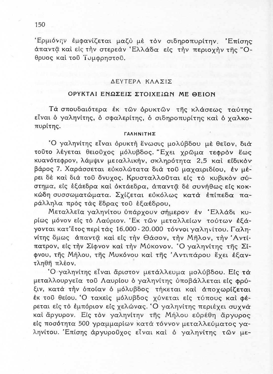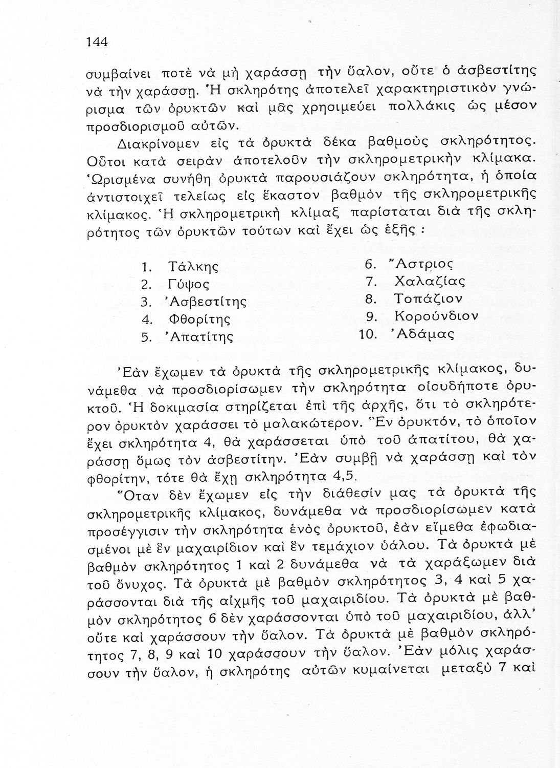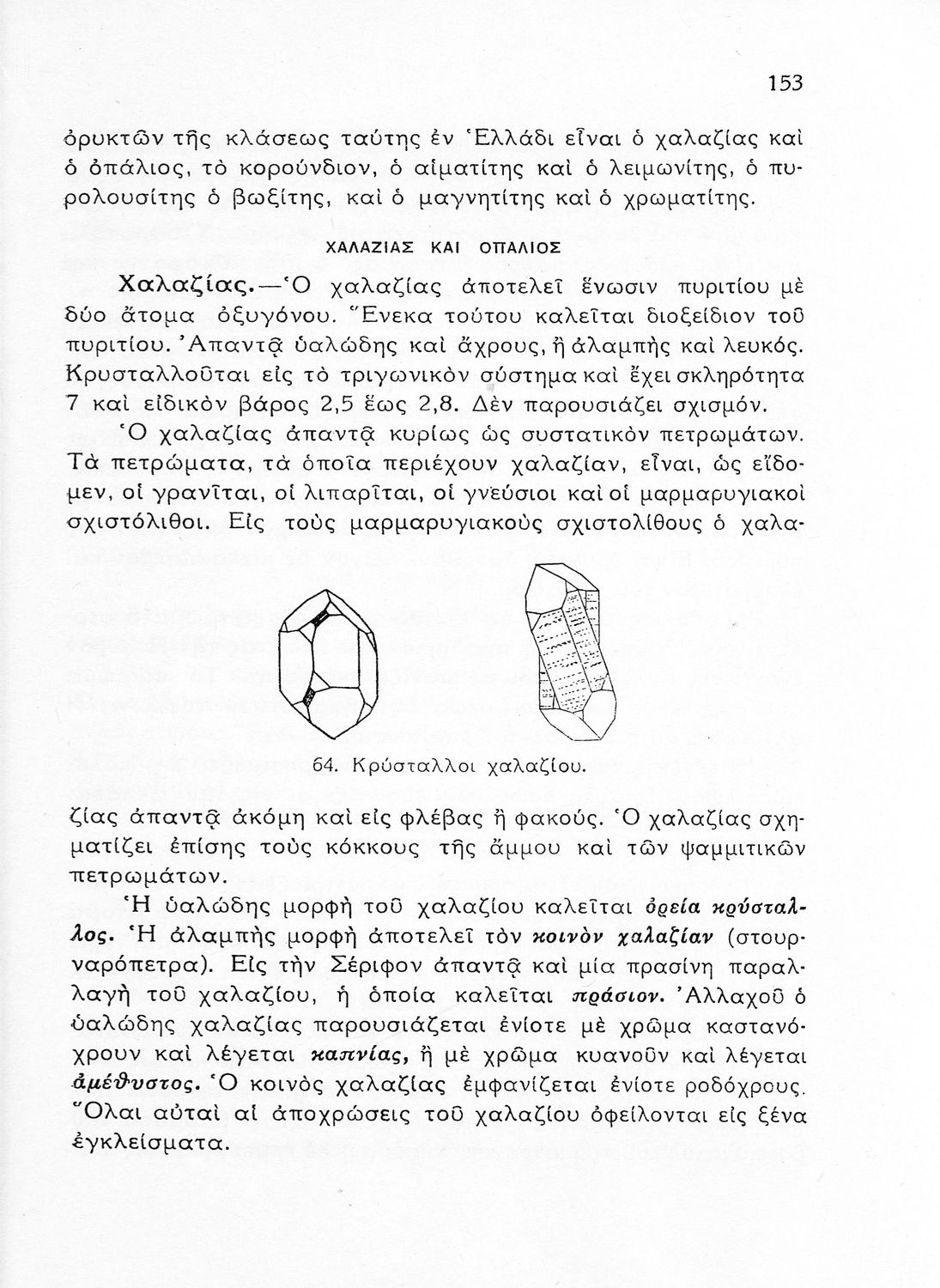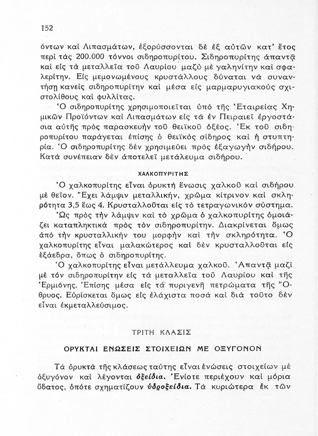 Σχολικό εγχειρίδιο Γεωλογίας/Ορυκτολογίας για την Δ΄ τάξη των Εξαταξίων Γυμνασίων που παρουσιάζει τα ορυκτά με βάση την κλάση στην οποία ανήκουν. Το τμήμα της γεωλογίας εστιάζει στους γεωλογικούς αιώνες. Ο συγγραφέας ήταν υφηγητής της γεωλογίας στο Πανεπιστήμιο Αθηνών.