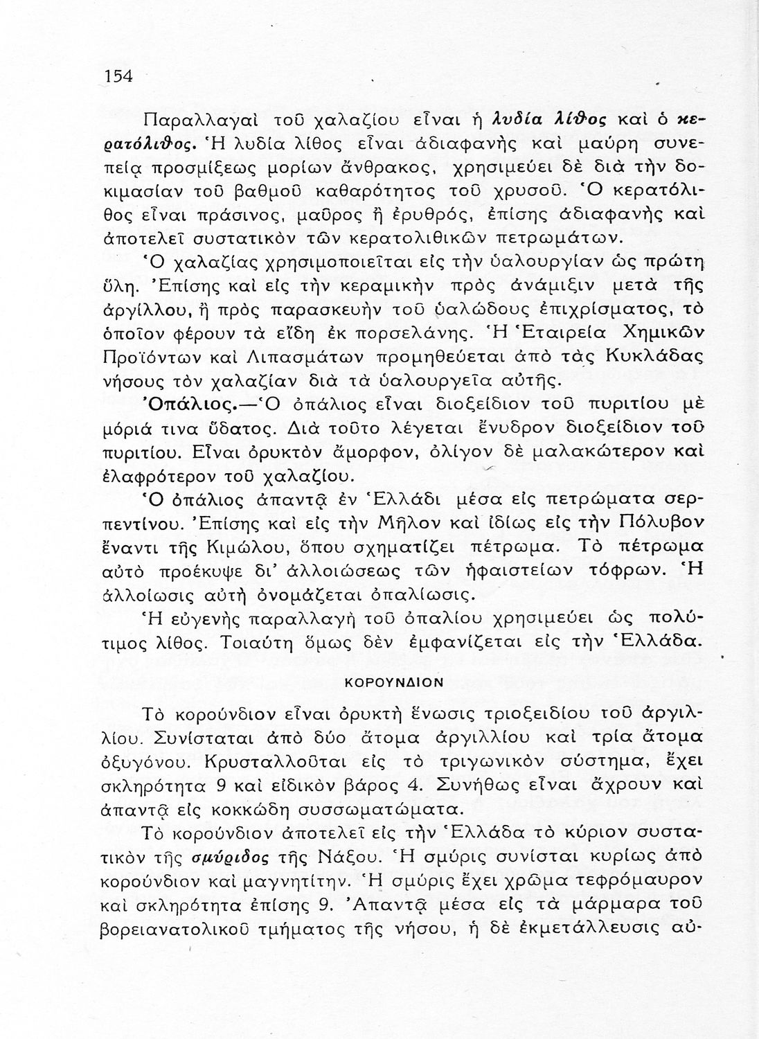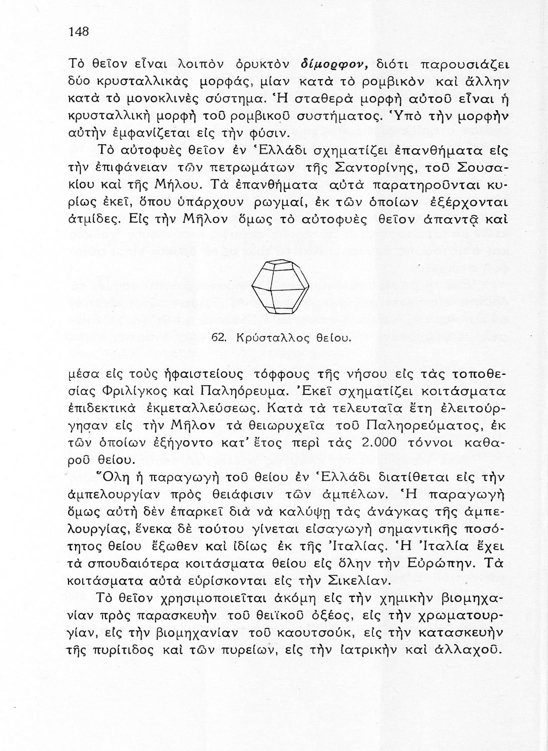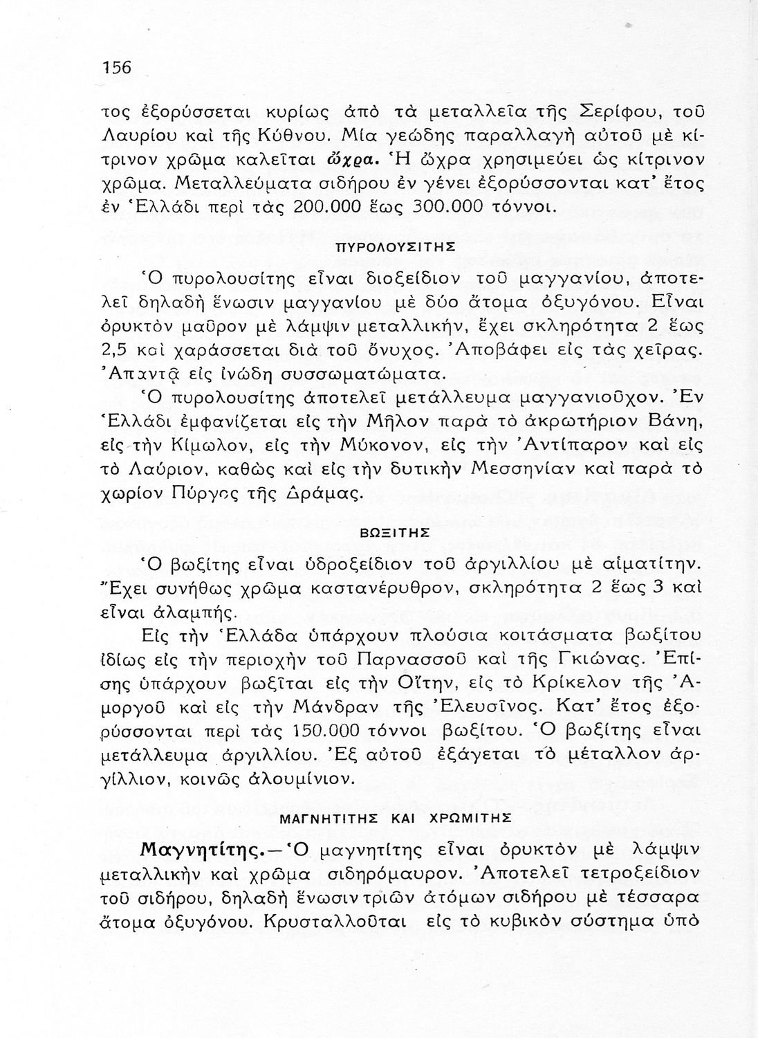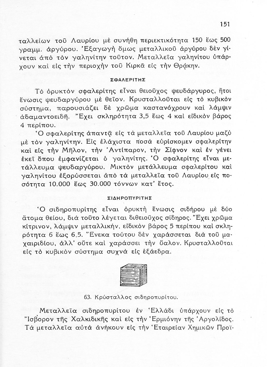 Σχολικό εγχειρίδιο Γεωλογίας/Ορυκτολογίας για την Δ΄ τάξη των Εξαταξίων Γυμνασίων που παρουσιάζει τα ορυκτά με βάση την κλάση στην οποία ανήκουν. Το τμήμα της γεωλογίας εστιάζει στους γεωλογικούς αιώνες. Ο συγγραφέας ήταν υφηγητής της γεωλογίας στο Πανεπιστήμιο Αθηνών.