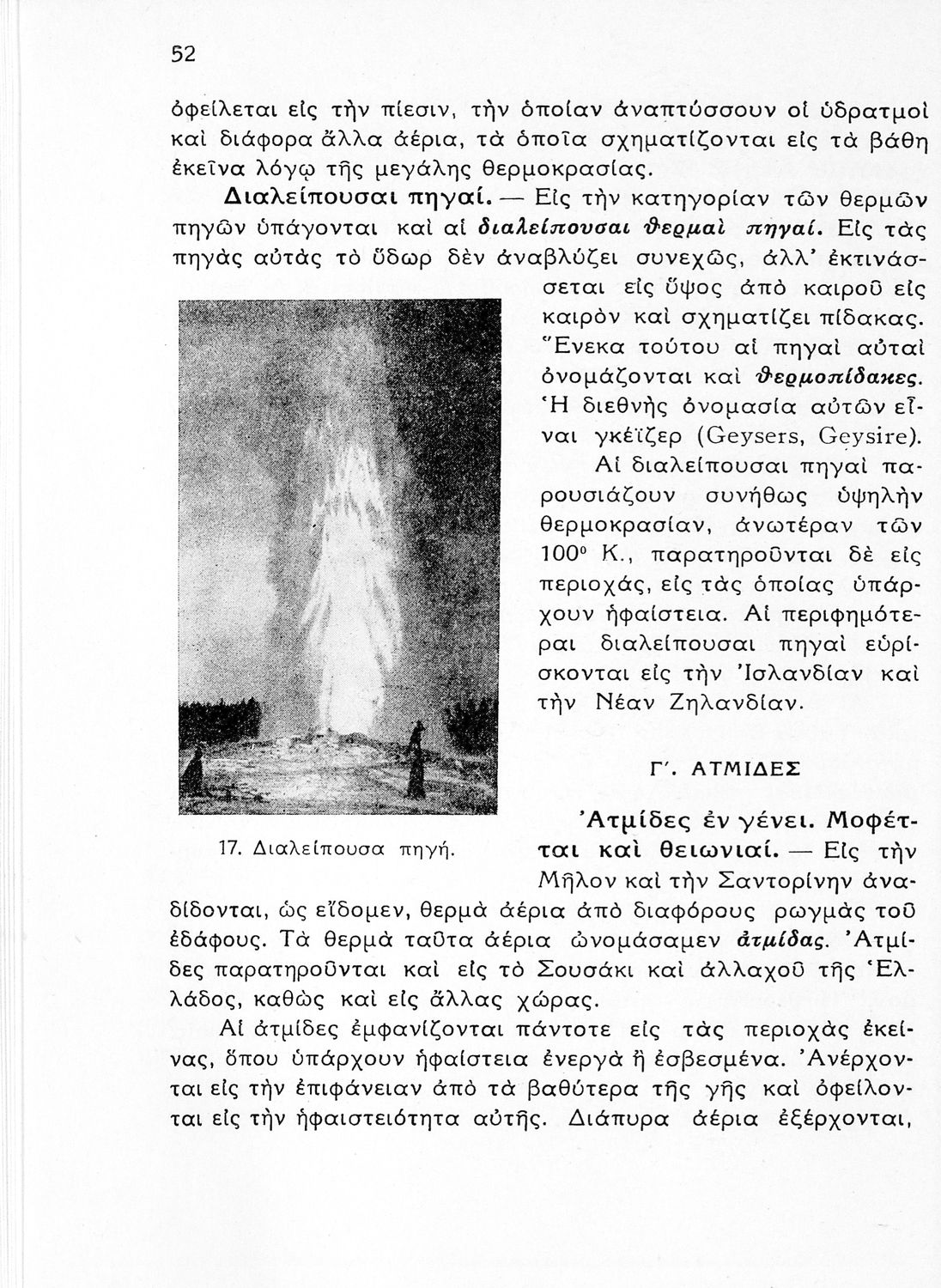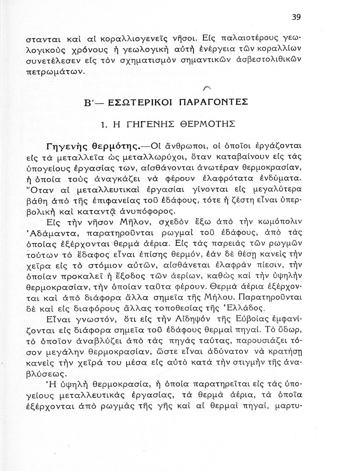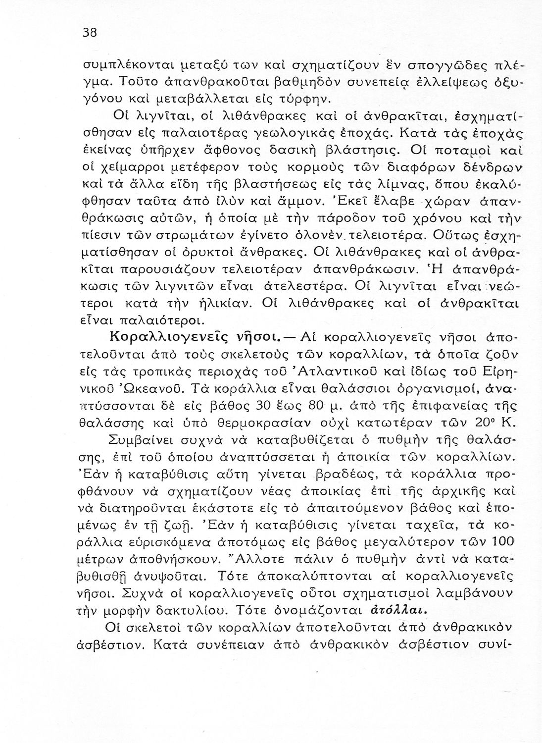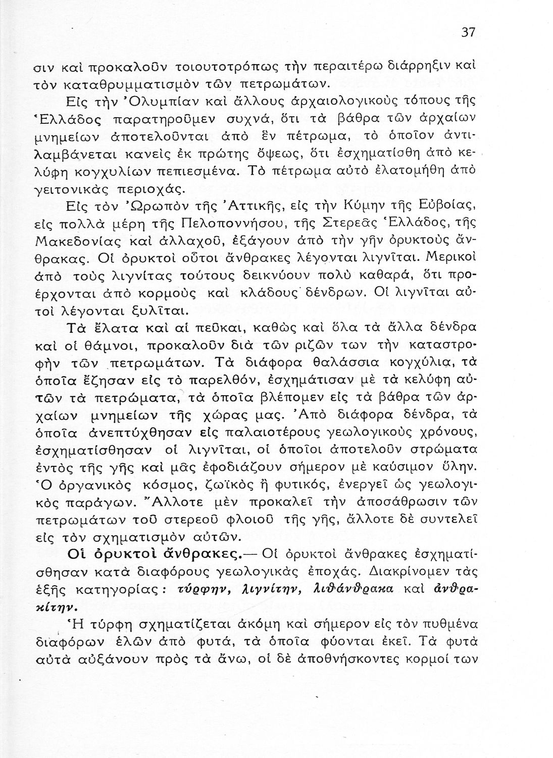 Σχολικό εγχειρίδιο Γεωλογίας/Ορυκτολογίας για την Δ΄ τάξη των Εξαταξίων Γυμνασίων που παρουσιάζει τα ορυκτά με βάση την κλάση στην οποία ανήκουν. Το τμήμα της γεωλογίας εστιάζει στους γεωλογικούς αιώνες. Ο συγγραφέας ήταν υφηγητής της γεωλογίας στο Πανεπιστήμιο Αθηνών.