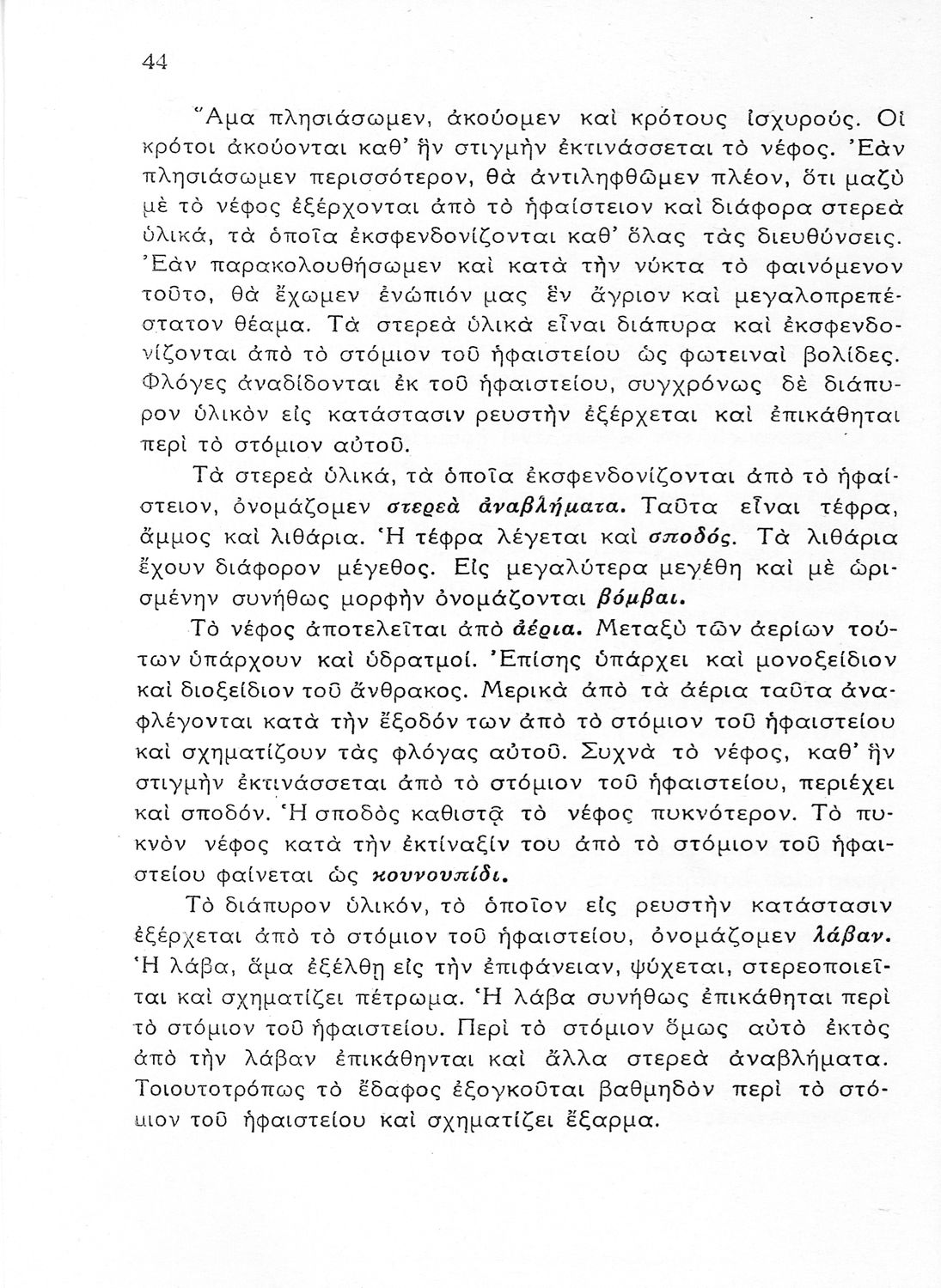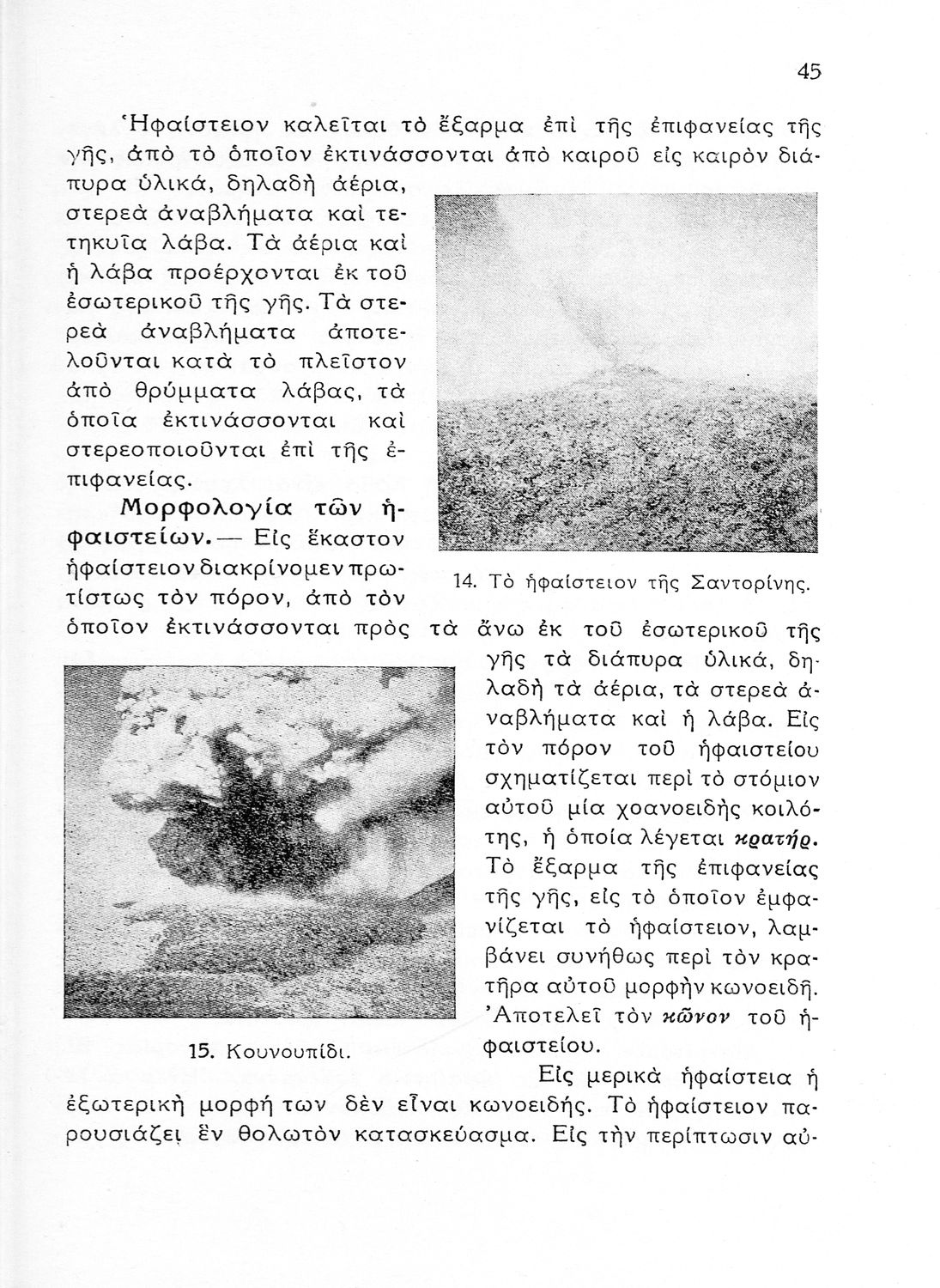 Σχολικό εγχειρίδιο Γεωλογίας και Ορυκτολογίας Β΄ Γυμνασίου που πραγματεύεται διάφορα γεωλογικά φαινόμενα, όπως τα ηφαίστεια και οι σεισμοί, και την στρωματογραφία και το γεωλογικό παρελθόν της Γης. Στο δεύτερο