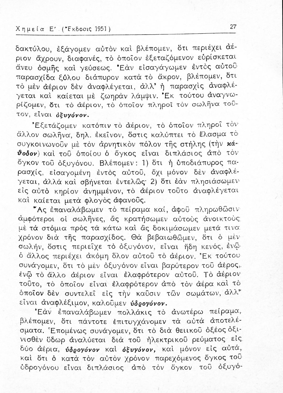 Τίτλος: Χημεία. Δια την Ε΄ Τάξιν των Γυμνασίων