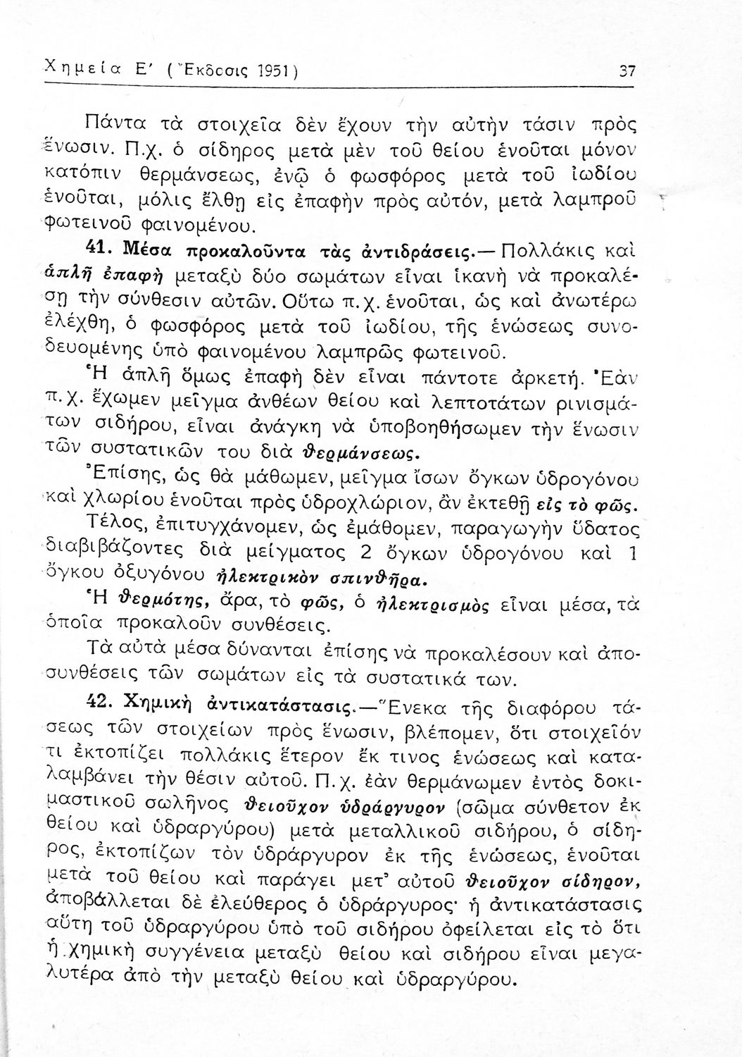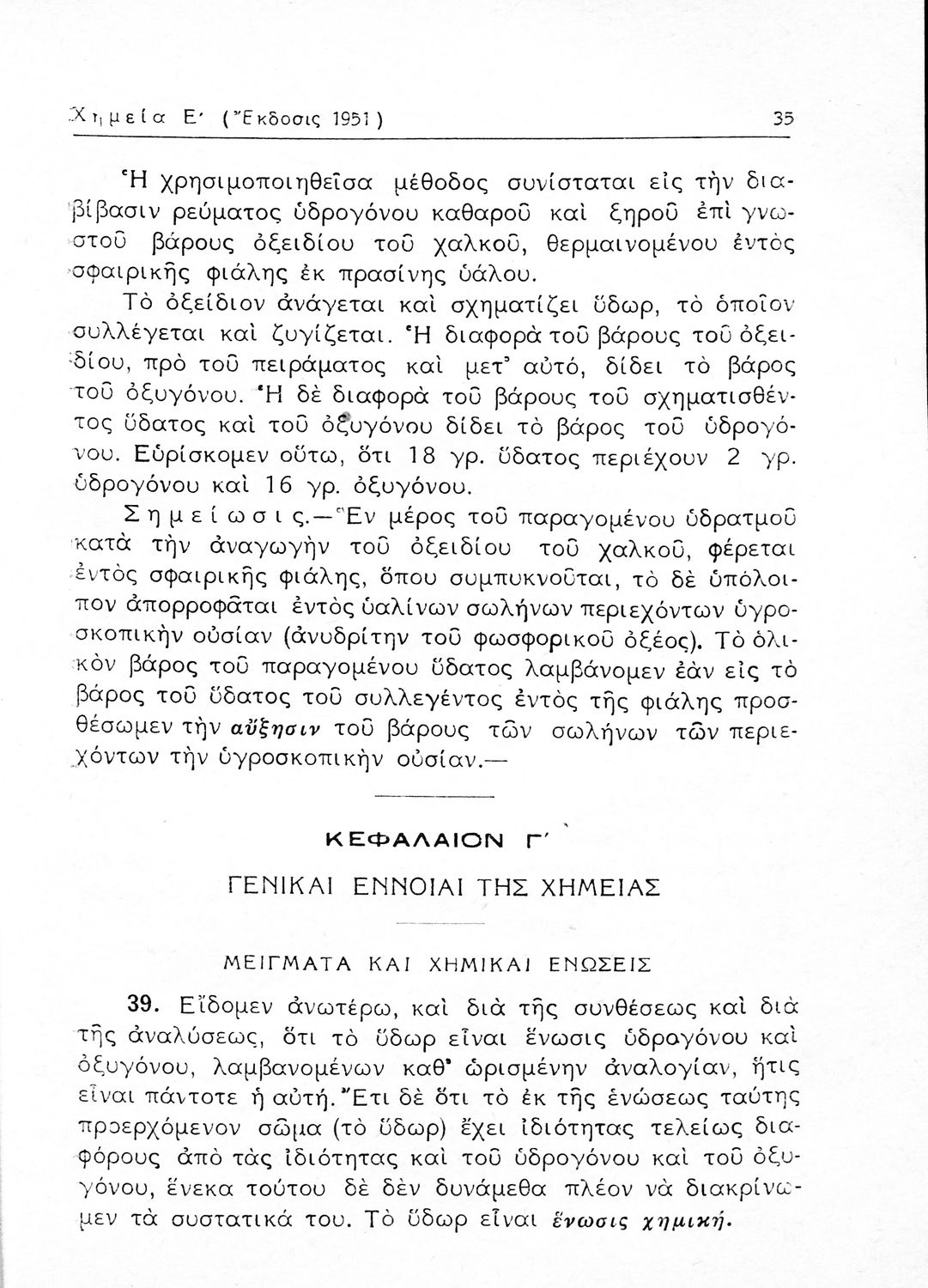Χημεία. Δια την Ε΄ Τάξιν των Γυμνασίων